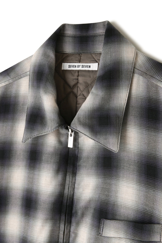 OMBRE CHECK ZIP UP LONG BLOUSON ‐Cotton / Yak‐