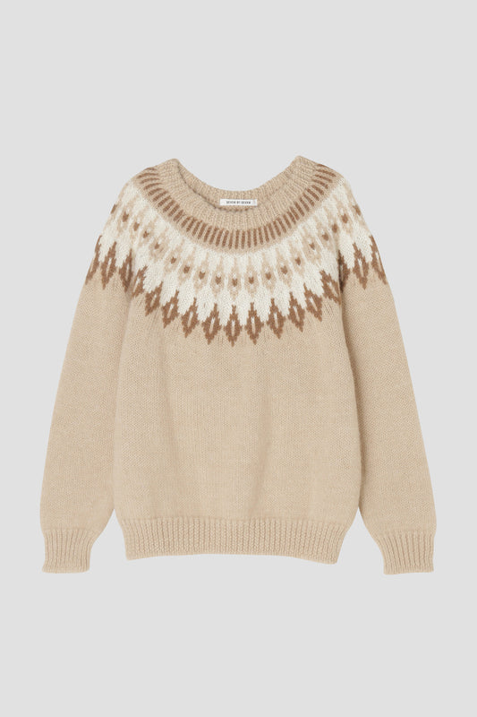 INDIGO YARN CREW NECK CABLE SWEATER - One wash -