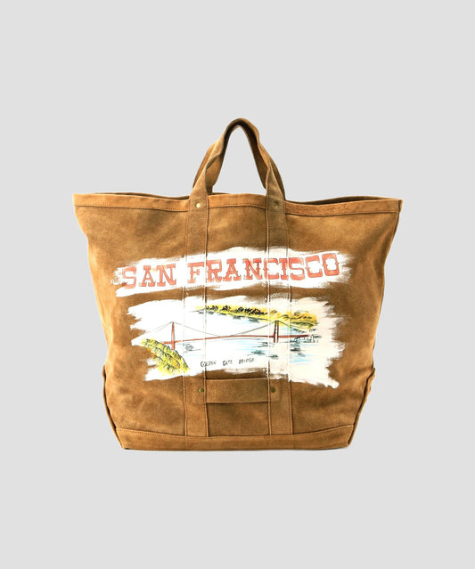 HAND PAINTED LEATHER TOTE BAG - Cow split leather -