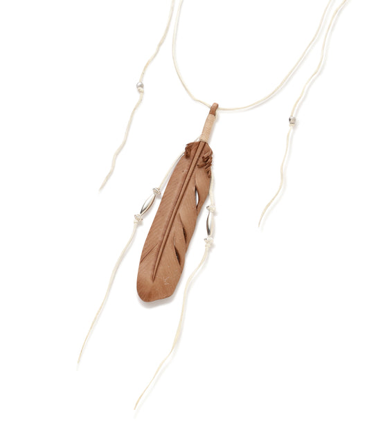 【Rooster King&Co.,/SEVEN BY SEVEN】 LEATHER CARVING COLORED FEATHER NECKLACE -Silver Beads-