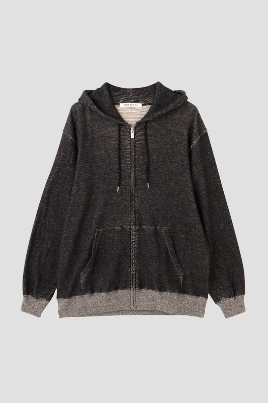 FULL ZIP THERMAL HOODIE - Mixed “UNSTAINED” yarn -