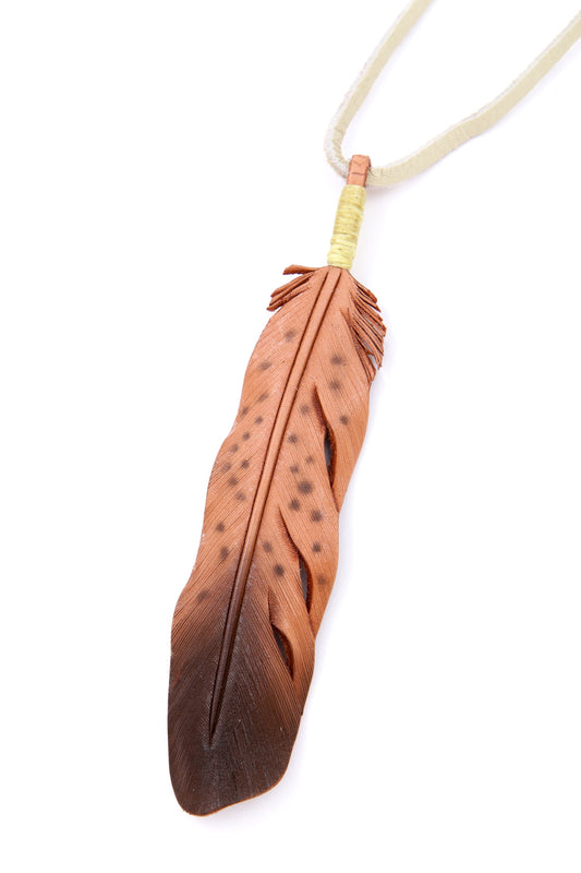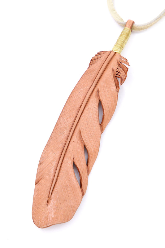 LEATHER CARVING FEATHER NECKLACE -Large-