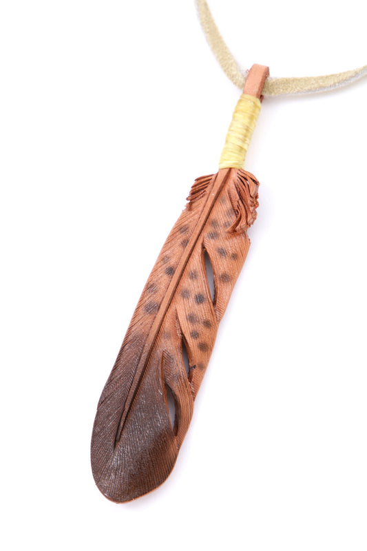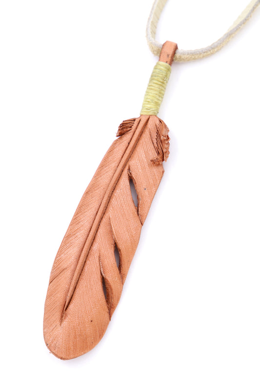 LEATHER CARVING FEATHER NECKLACE -Small-