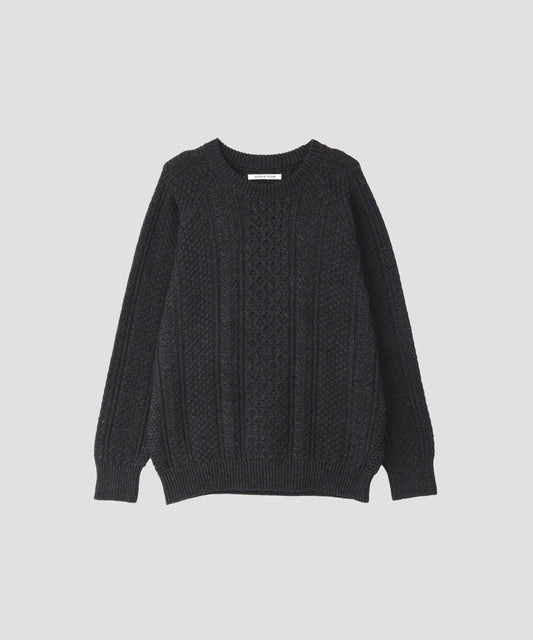 INDIGO YARN CREW NECK CABLE SWEATER - One wash -