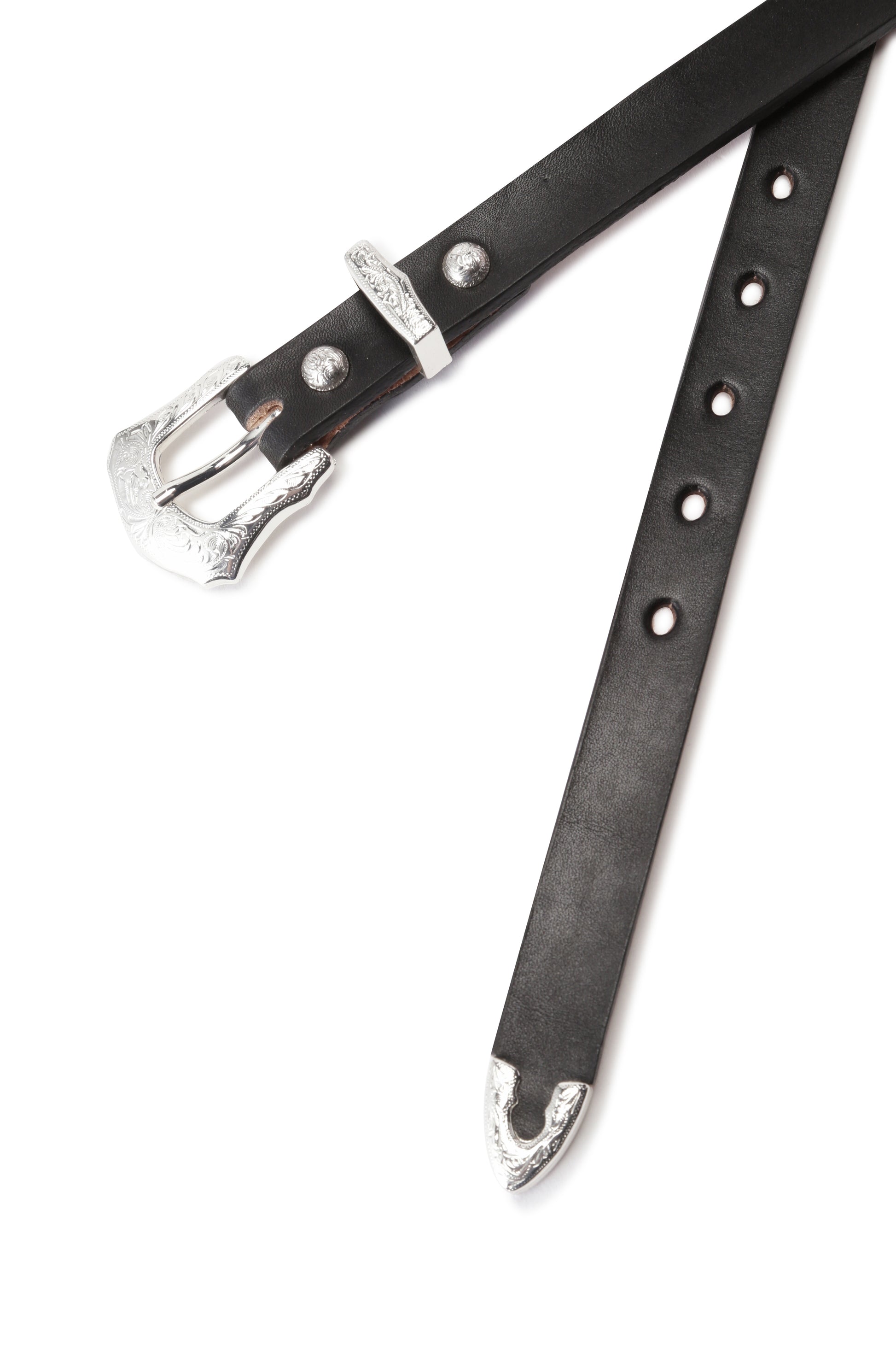 This narrow western belt uses distinctive parts from a collaboration series with Rooster King & Co., which has undertaken various collaborations every season.