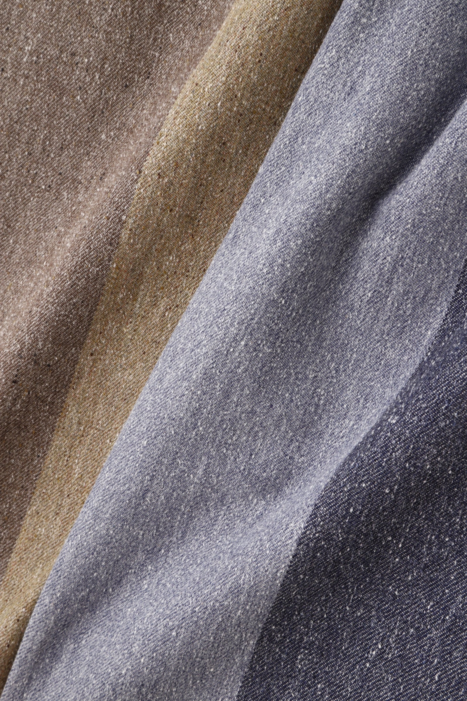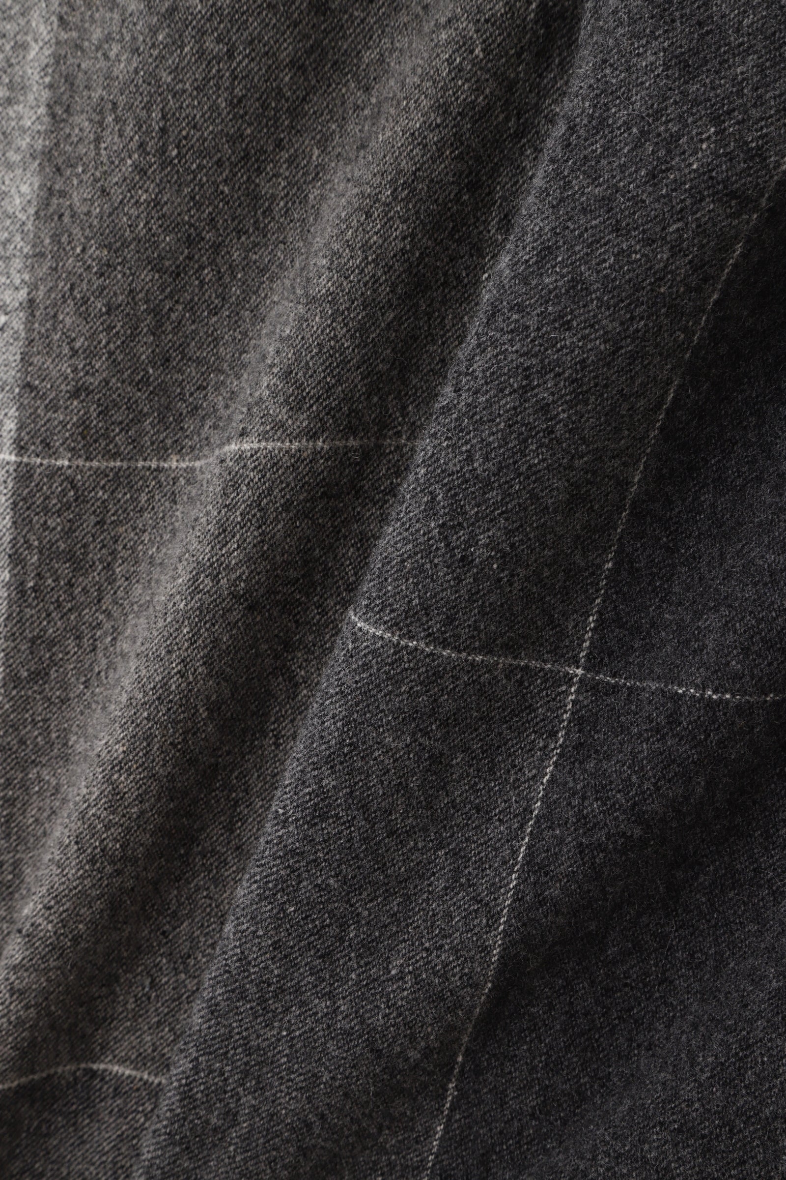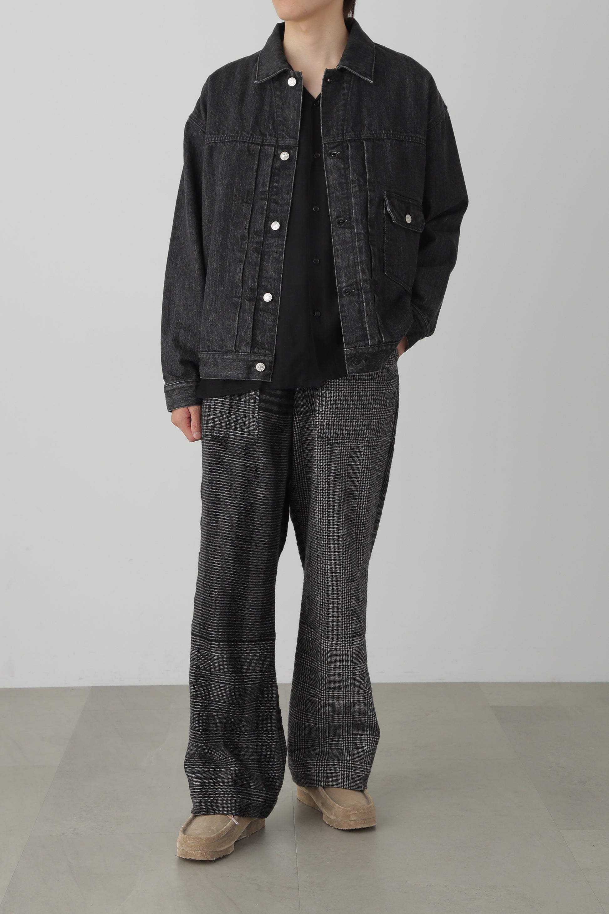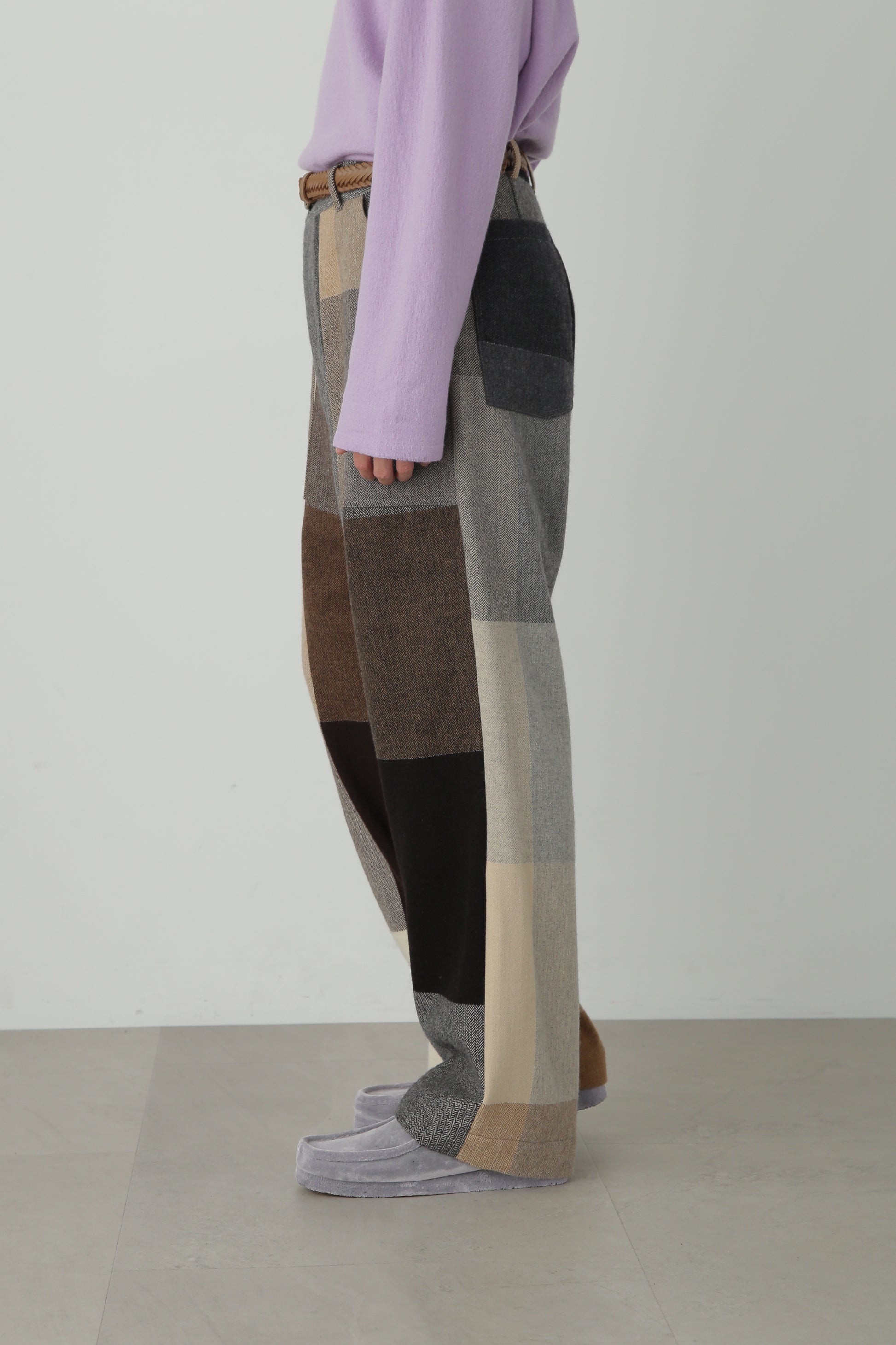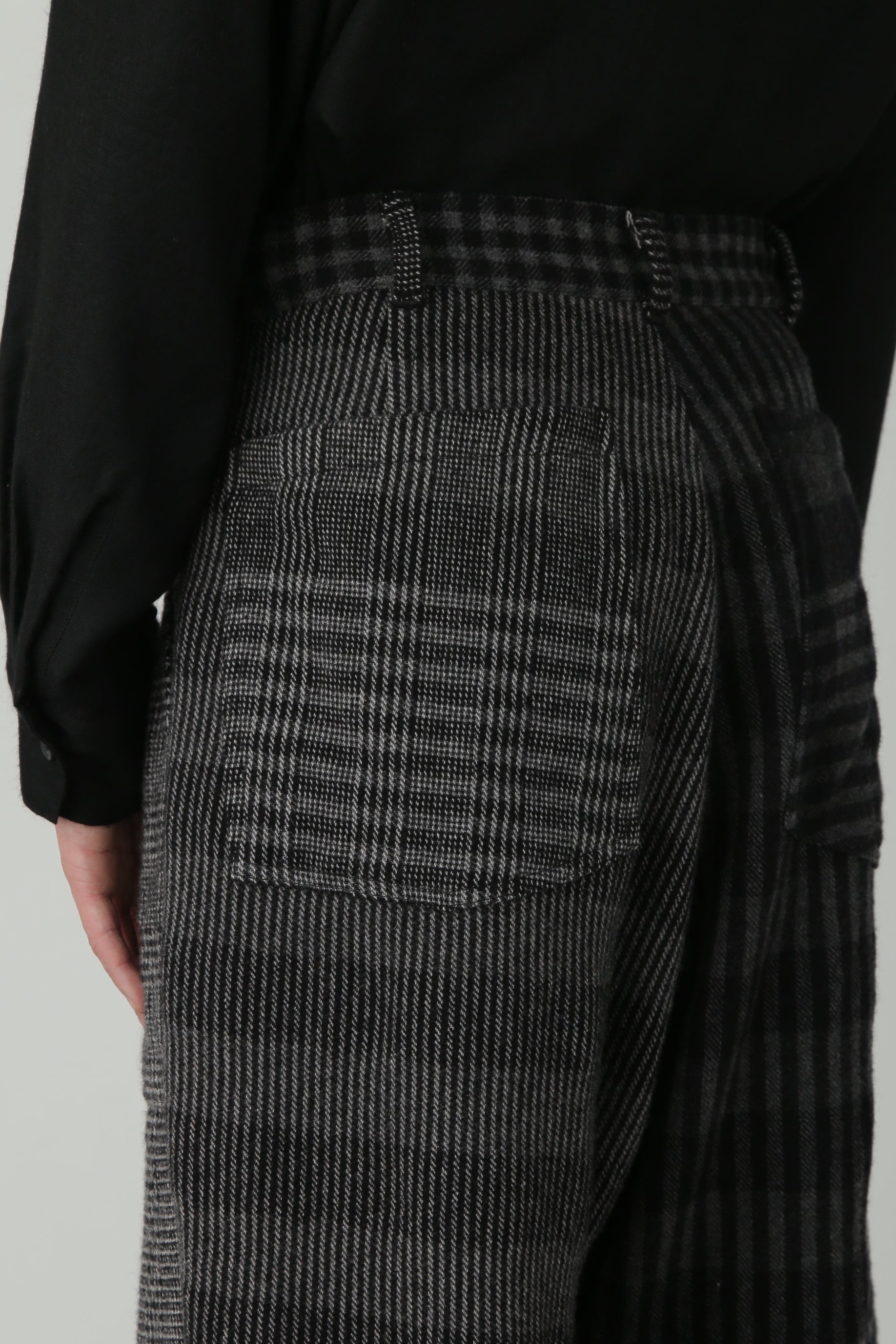 When making yarn-dyed materials, the fabric (mass sample) that is woven with various warp and weft variations uses multiple colors of threads in both the vertical and horizontal directions, so it is a material that is almost completely unsuitable for mass production. It has only been used as a reference for the coloring of the fabric in the pre-process of making the material, but due to the huge cost, it is rarely made in modern times. However, the brand has noticed the interestingness of this mass sample fabric and has been steadily collecting deadstock materials. This time, we have finally collected enough volume to make clothes, so we are developing it in several variations of styles. This is a fatigue design trouser that has been made with as much unnecessary detail as possible to highlight the interestingness of this material, while creating a change in the pattern with an attached pocket. Please enjoy the gradation unique to this material, such as the difference in texture of each part and the change in color as it approaches the hem, and the difference in the pattern created by the assortment expression.