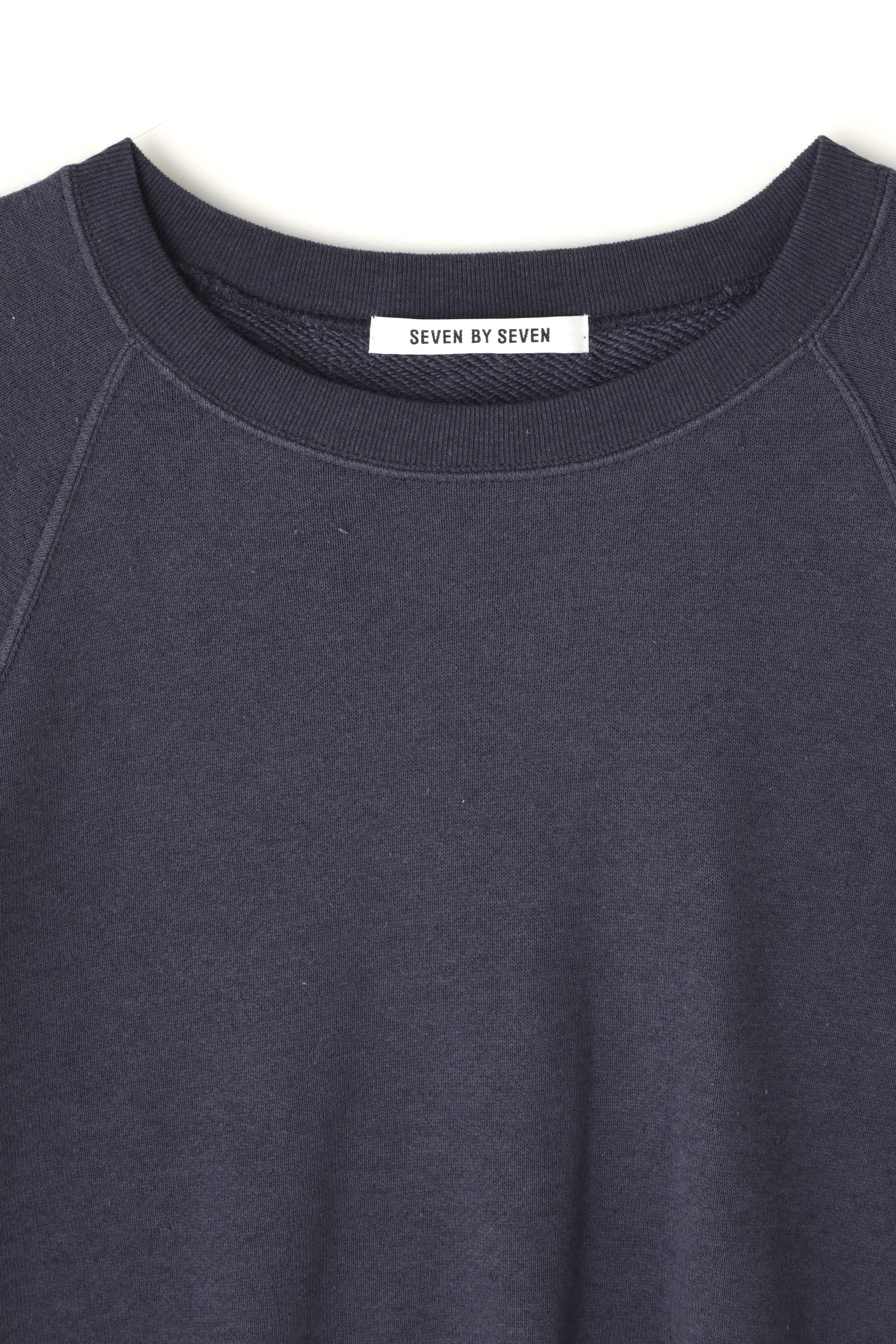 The wool material is made with shrink-proof yarn, which allows it to be washed in water. Another feature is the vintage-like faded look that comes from the inclusion of wool. The texture and comfort of the material, the glossy finish, and the textured look all match up to elevate the overall impression of a vintage mix style, and create a relaxed feel with a clean look. This raglan crew neck sweatshirt is typical of SEVEN BY SEVEN, which offers basic items with different approaches and angles to materials.