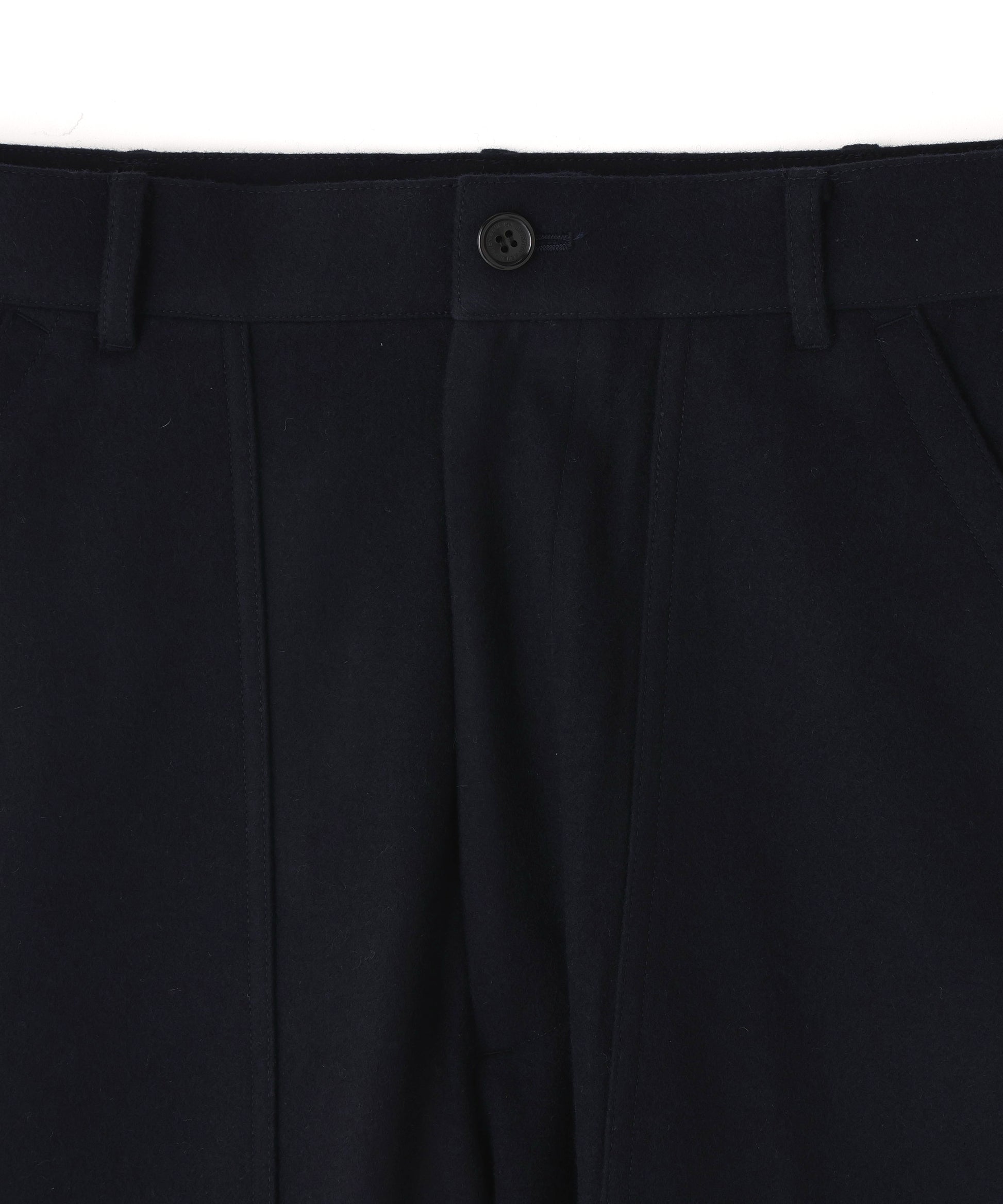柔らかさの中にハリ・コシを感じられるメルトン素材を採用したファティーグパンツデザインのトラウザー。