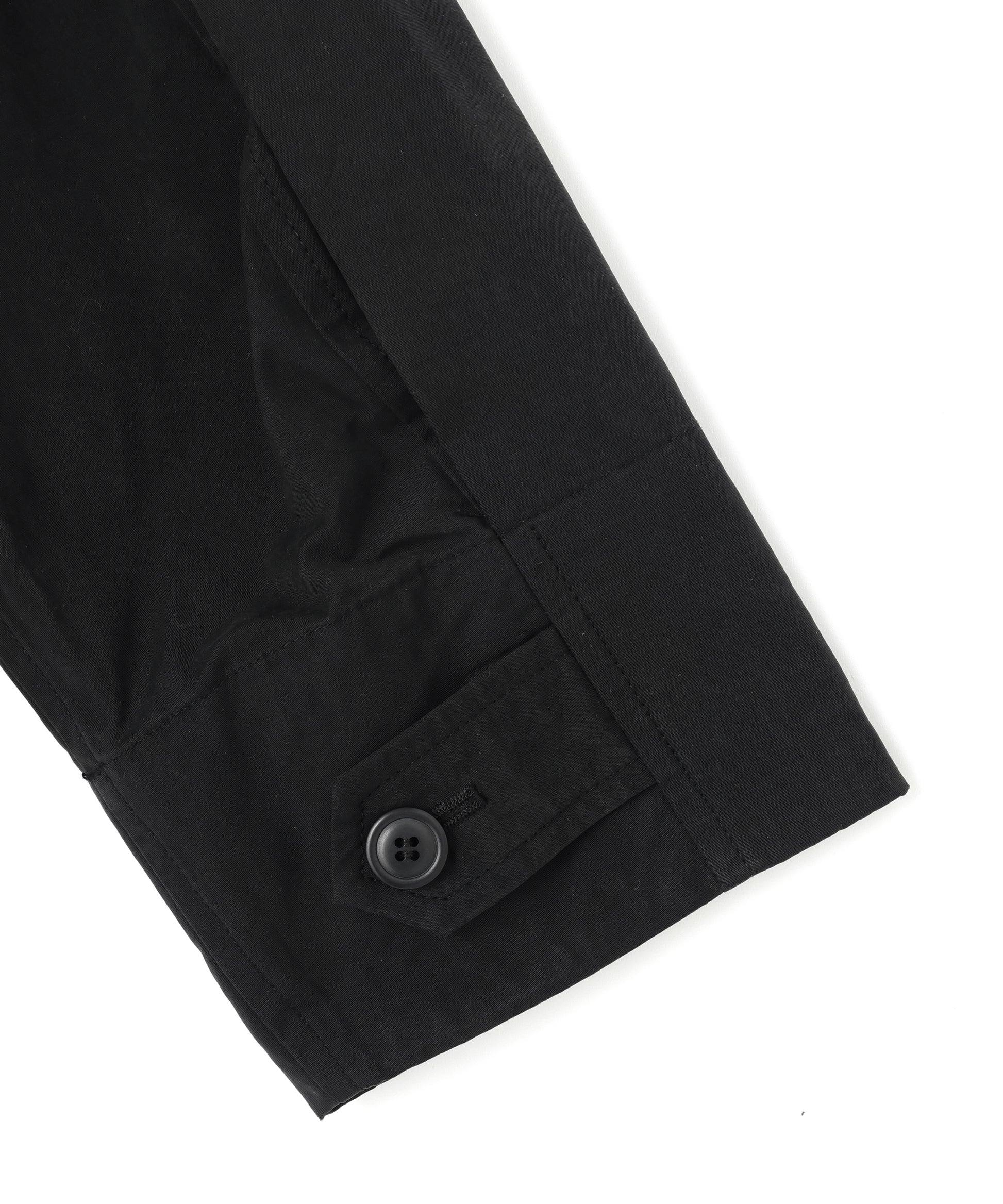 極細の糸を高密度に織り込んだ 滑らかで撥水性も兼ね備えた機能素材は、ハリ感がありタフさも感じられながら上品さも感じられる雰囲気となっています。