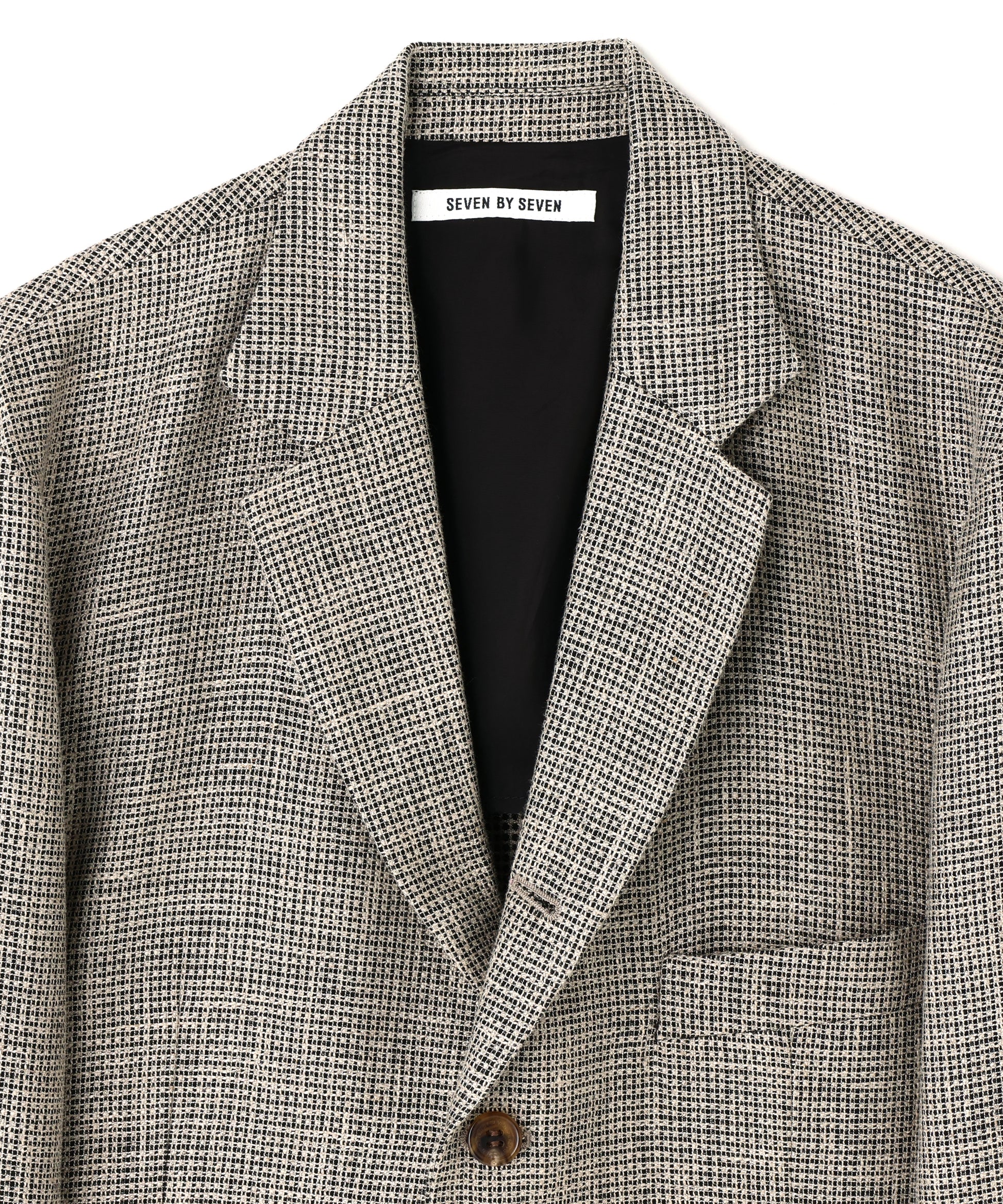 特徴的で風合いのある生地を使用した5ボタンのルーズなシルエットのテーラードジャケット。