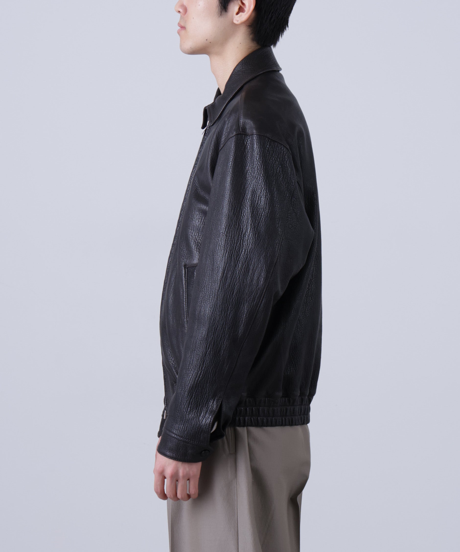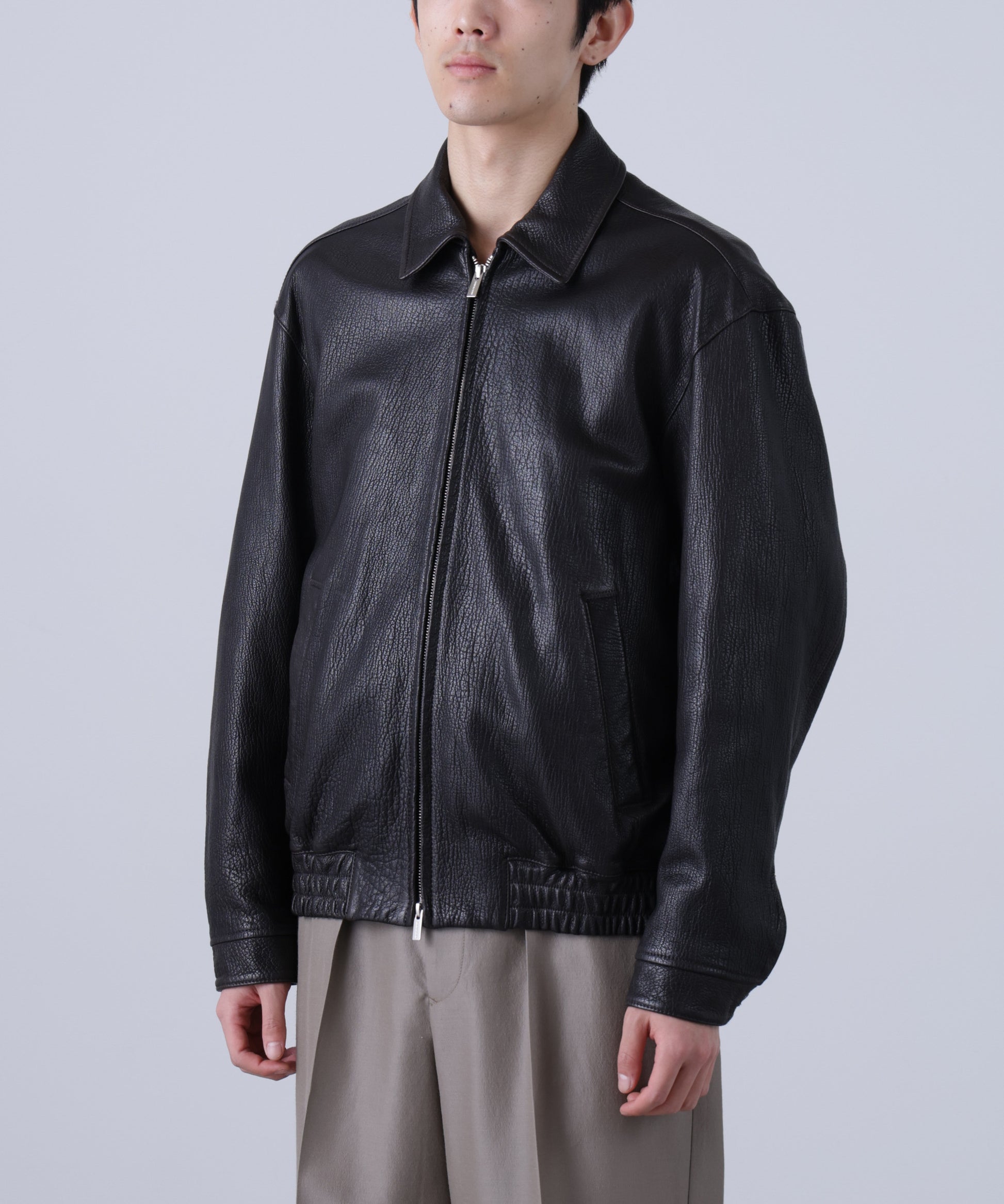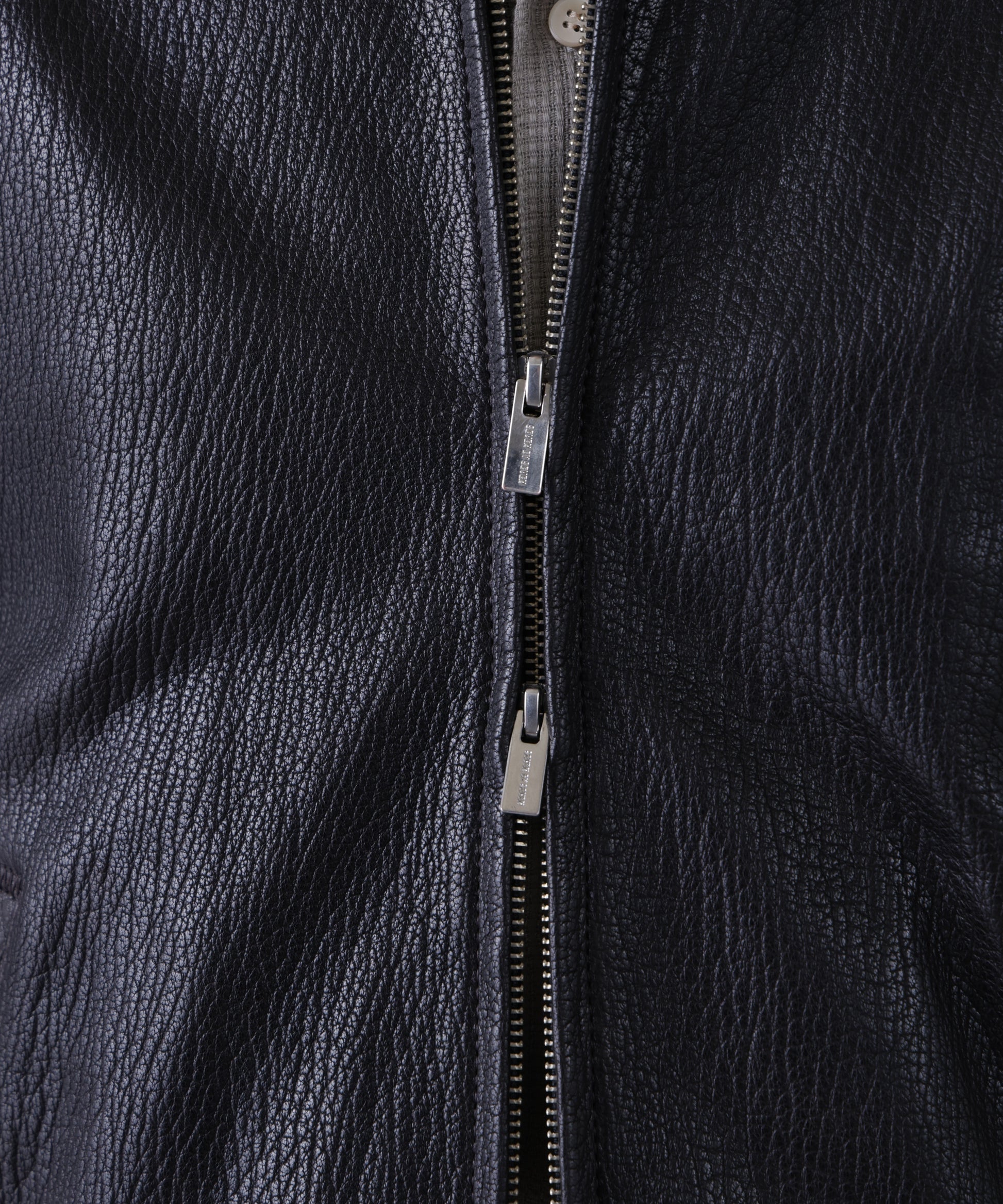 シボ感の特徴的な羊革を使用したジップアップブルゾン。