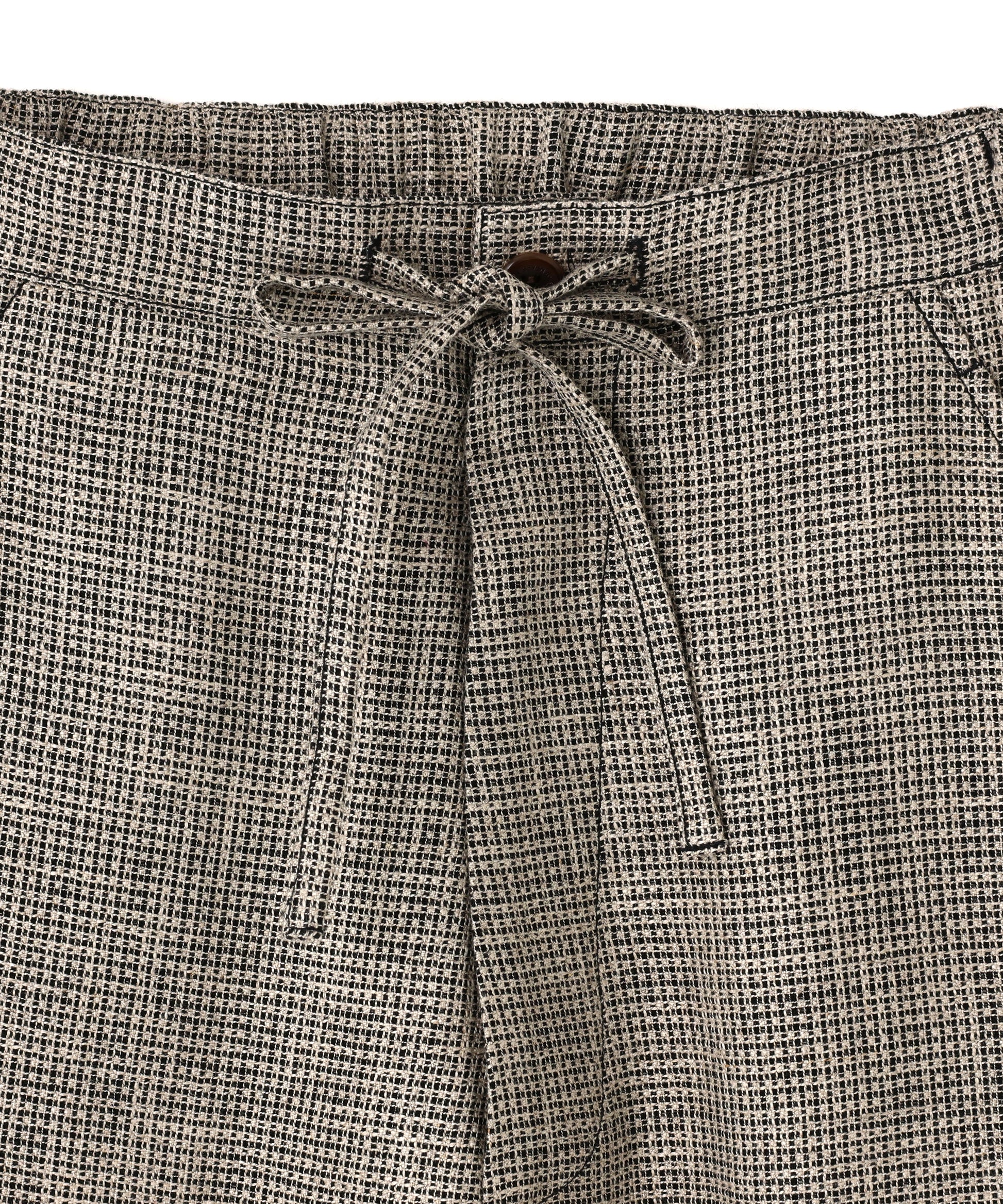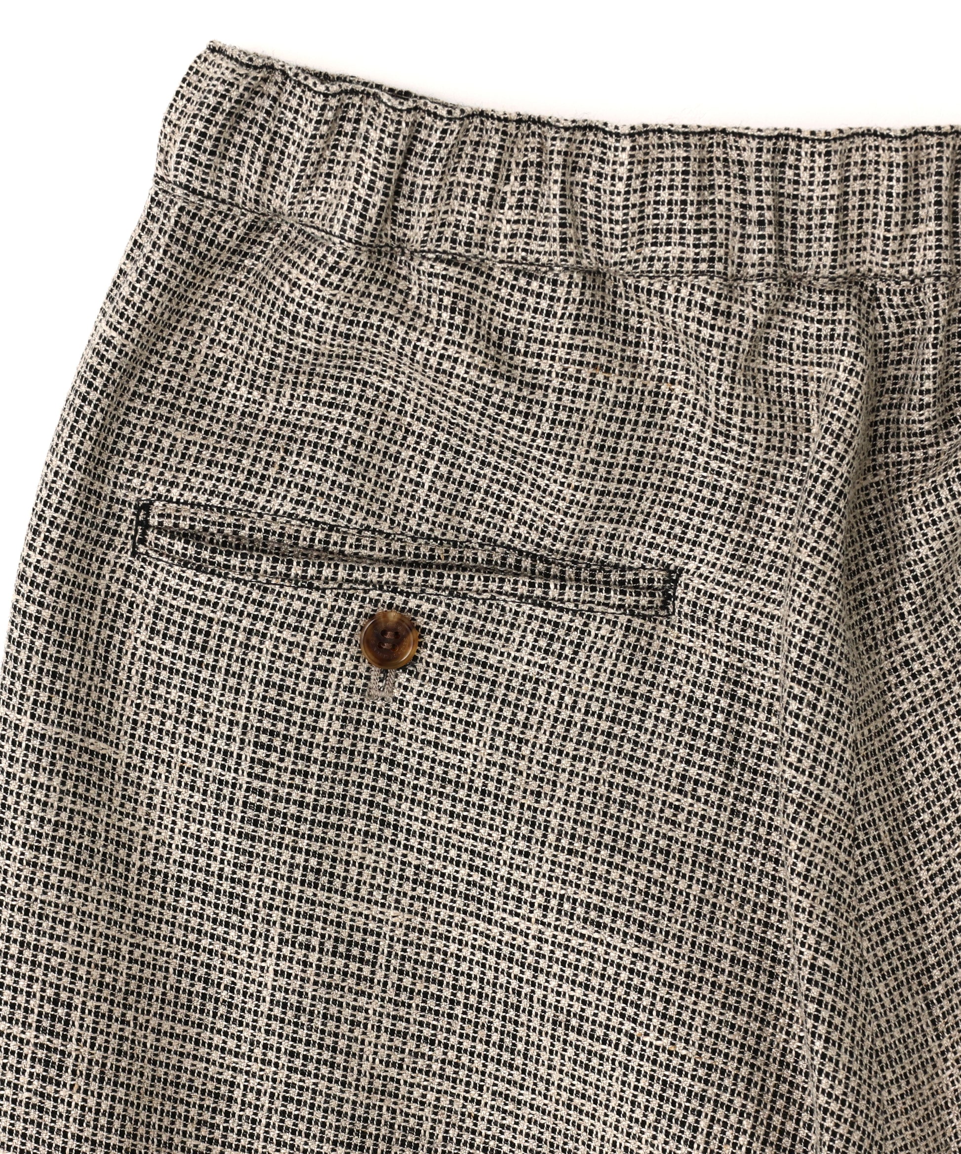 ウエスト周りは、後ろ半分がゴム仕様のため、快適さがありながらも、見た目の印象はトラウザーのようなシルエットに仕上がっています。