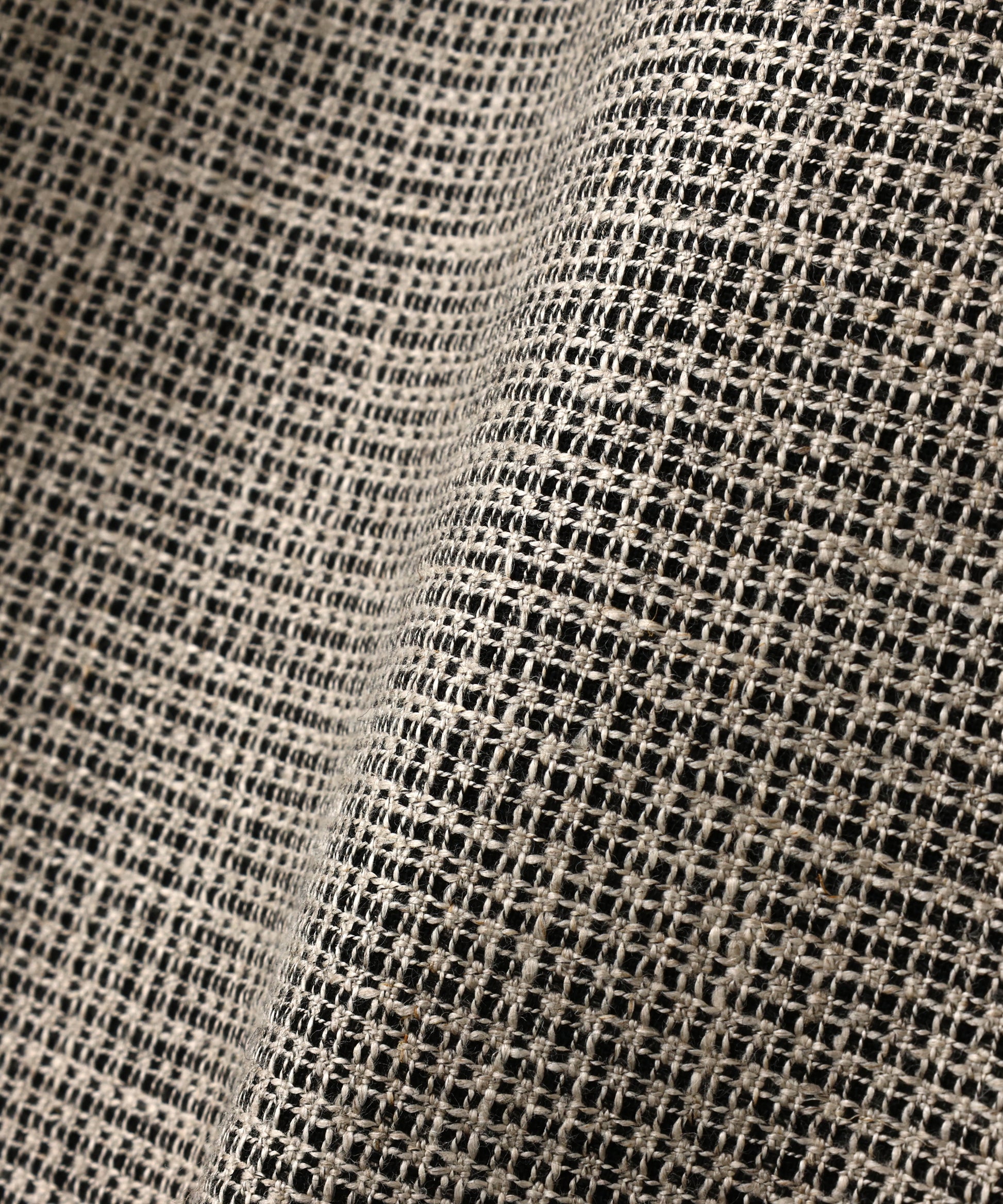 ナチュラルな風合いと高級感を両立させた特別な生地を使用しました。リネンとナイロンの杢糸(キナリ×黒)に、ウールクレープの強撚糸(黒)を組み合わせた交織素材は、凹凸のある表情豊かな生地感が魅力です。