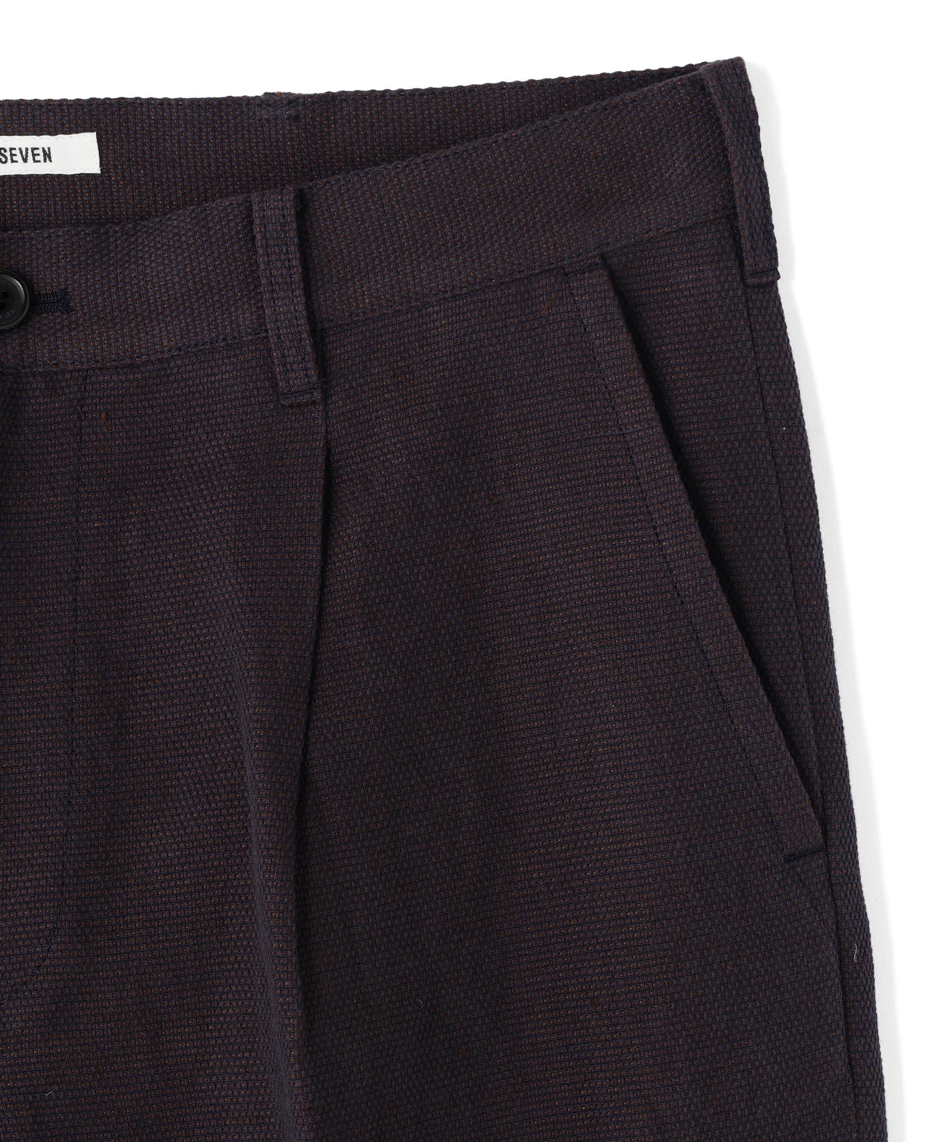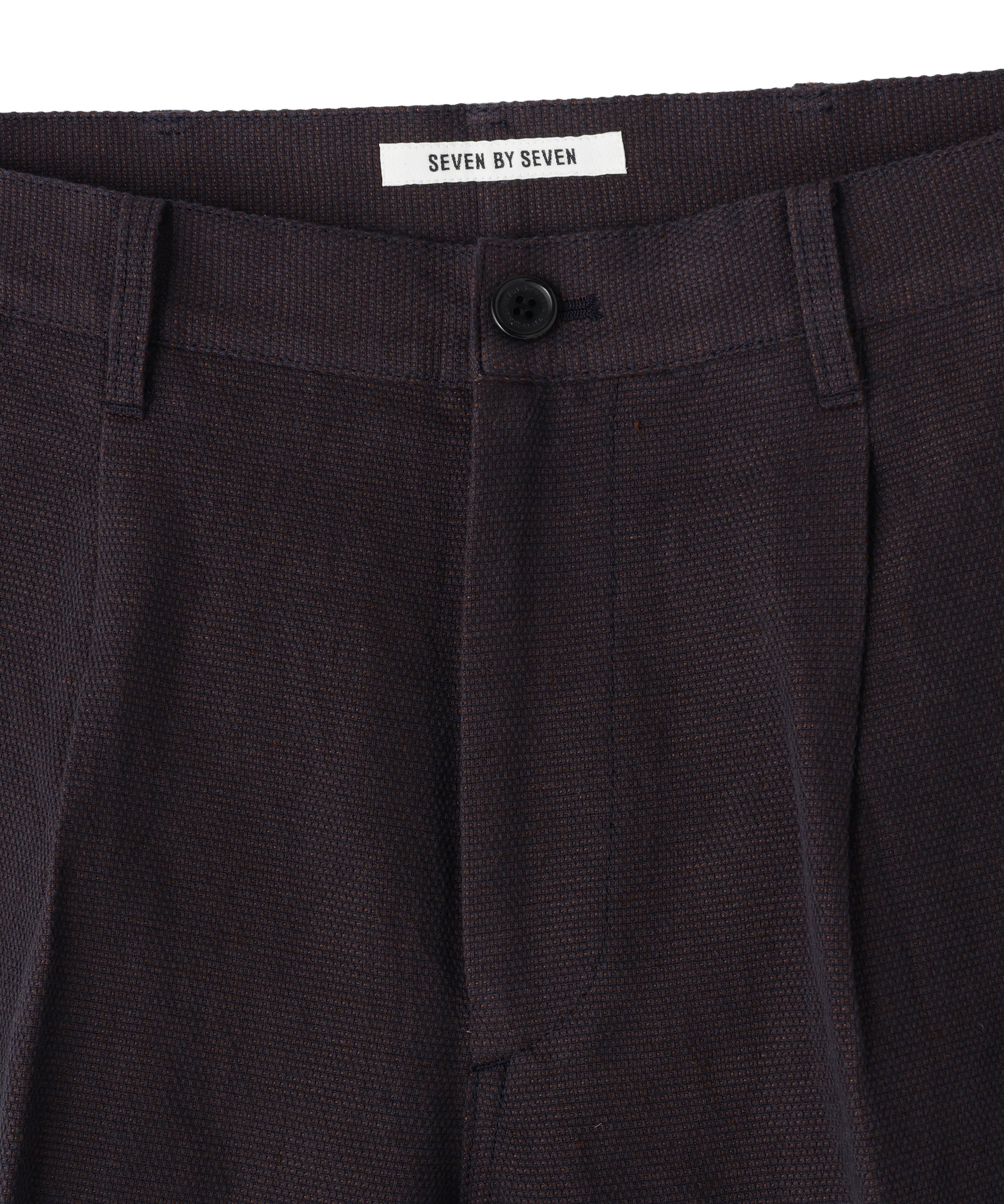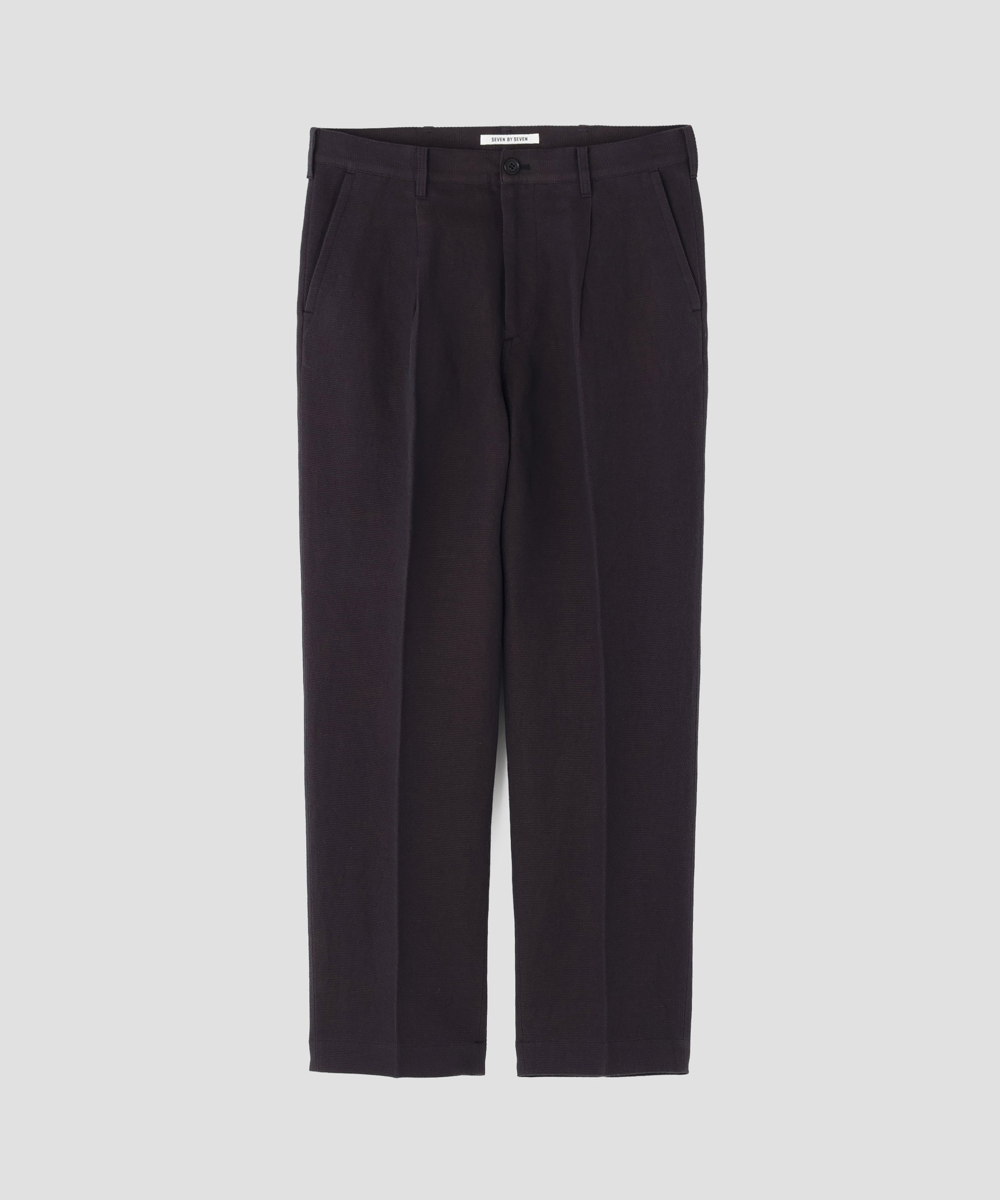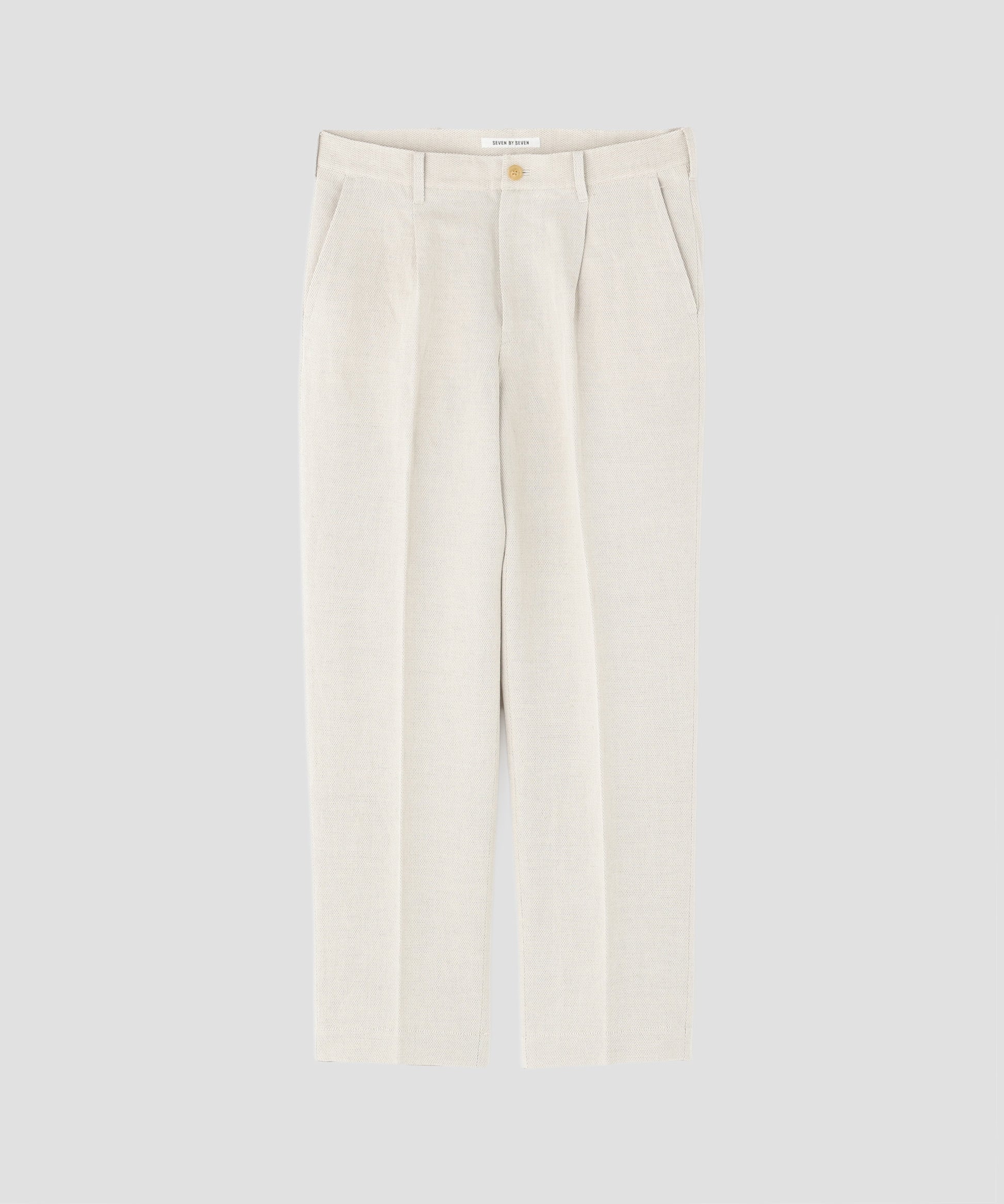 経糸にコットン、緯糸にリネンを使用したメッシュ組織の生地で作製した、風合い豊かなワンタック入りのカジュアルパンツ。