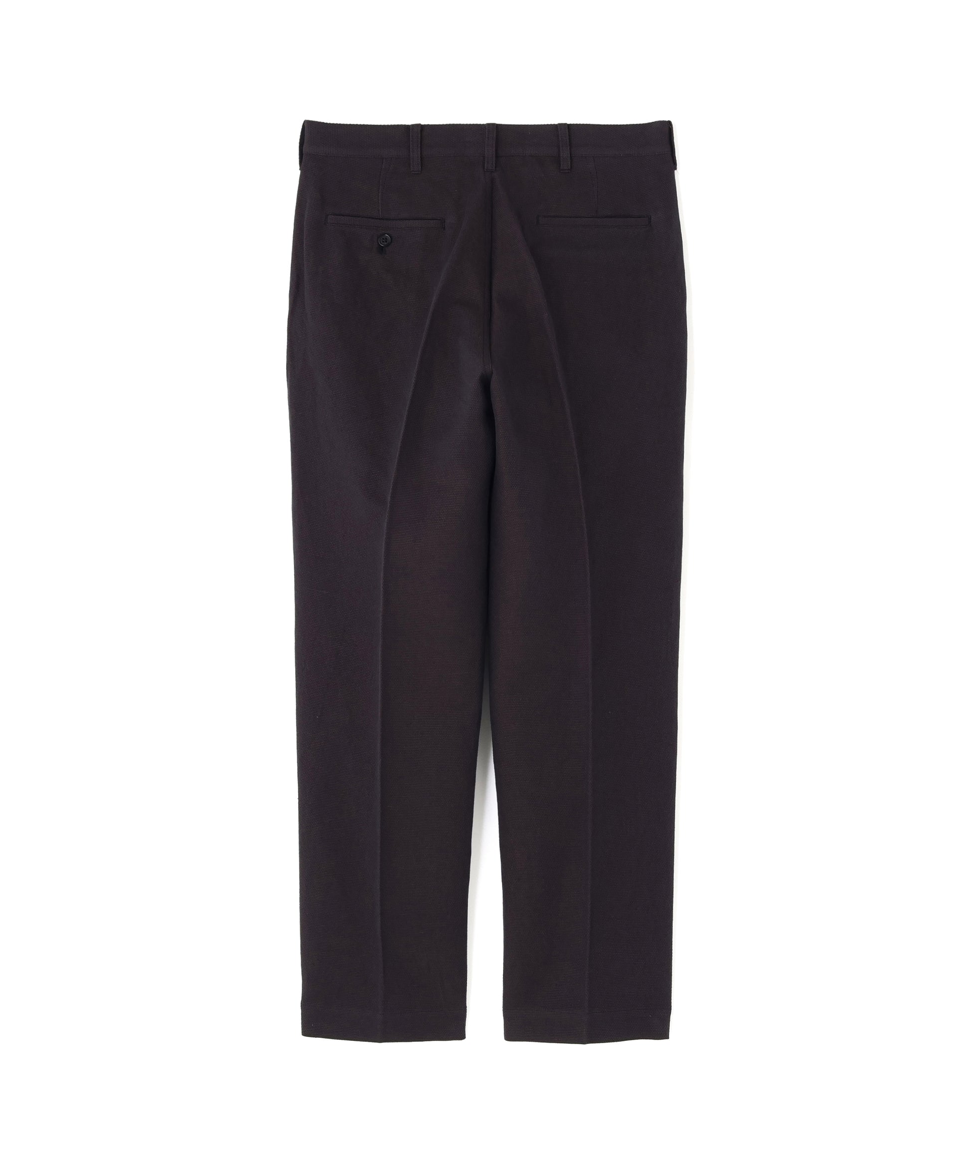 クラシックなチノパンツのディテールを取り入れつつも、素材のアプローチで、無骨さの中に洗練された印象を加えました。十分な余白があり、ゆったりとした印象がありながらも、美しさも感じられるシルエットは秀逸で、カジュアルにもキレイめなスタイルにも取り入れやすい仕上がりとなっています。