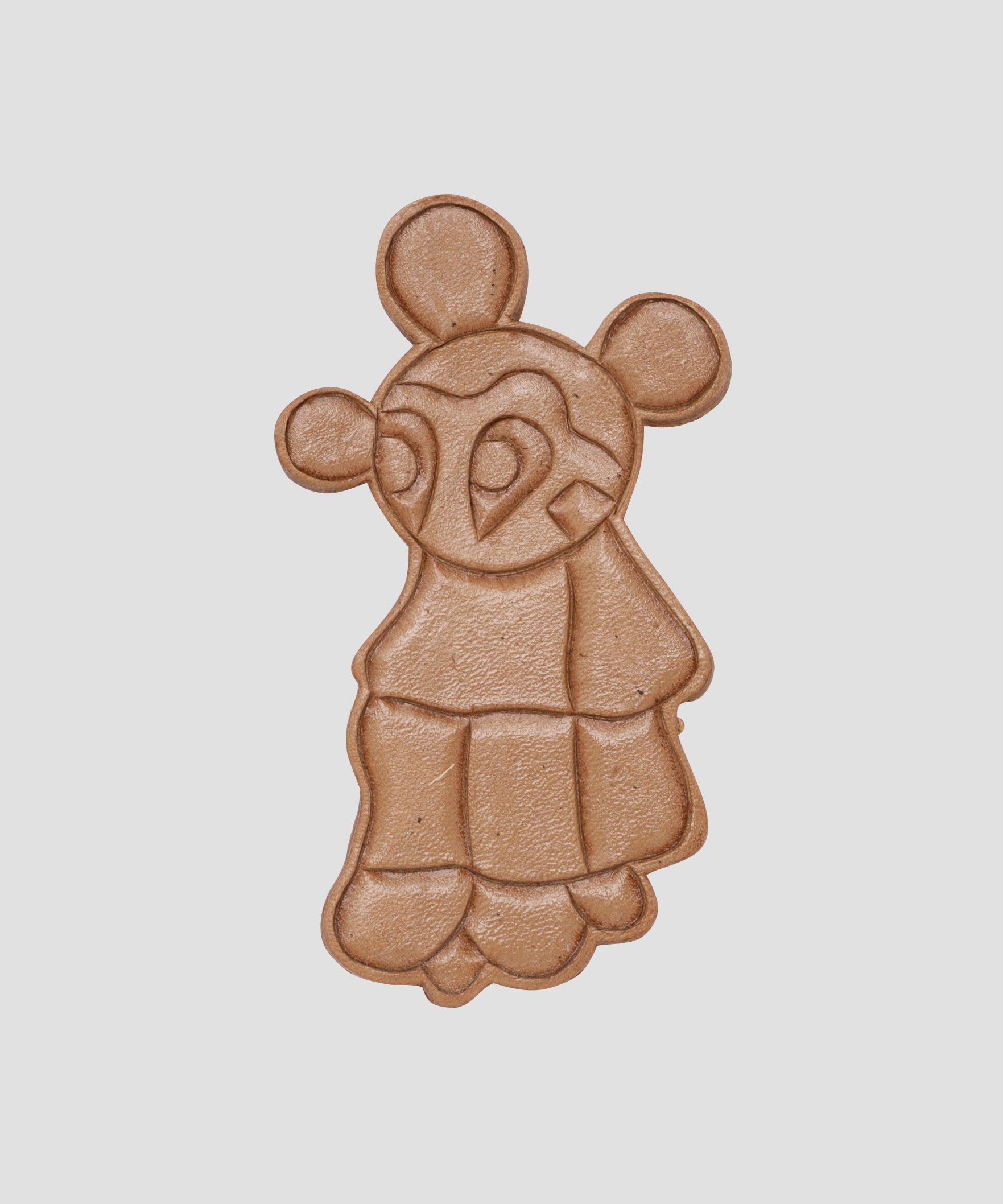 レザーカービングで作製した某有名キャラクター(マウス)型のピンズ。