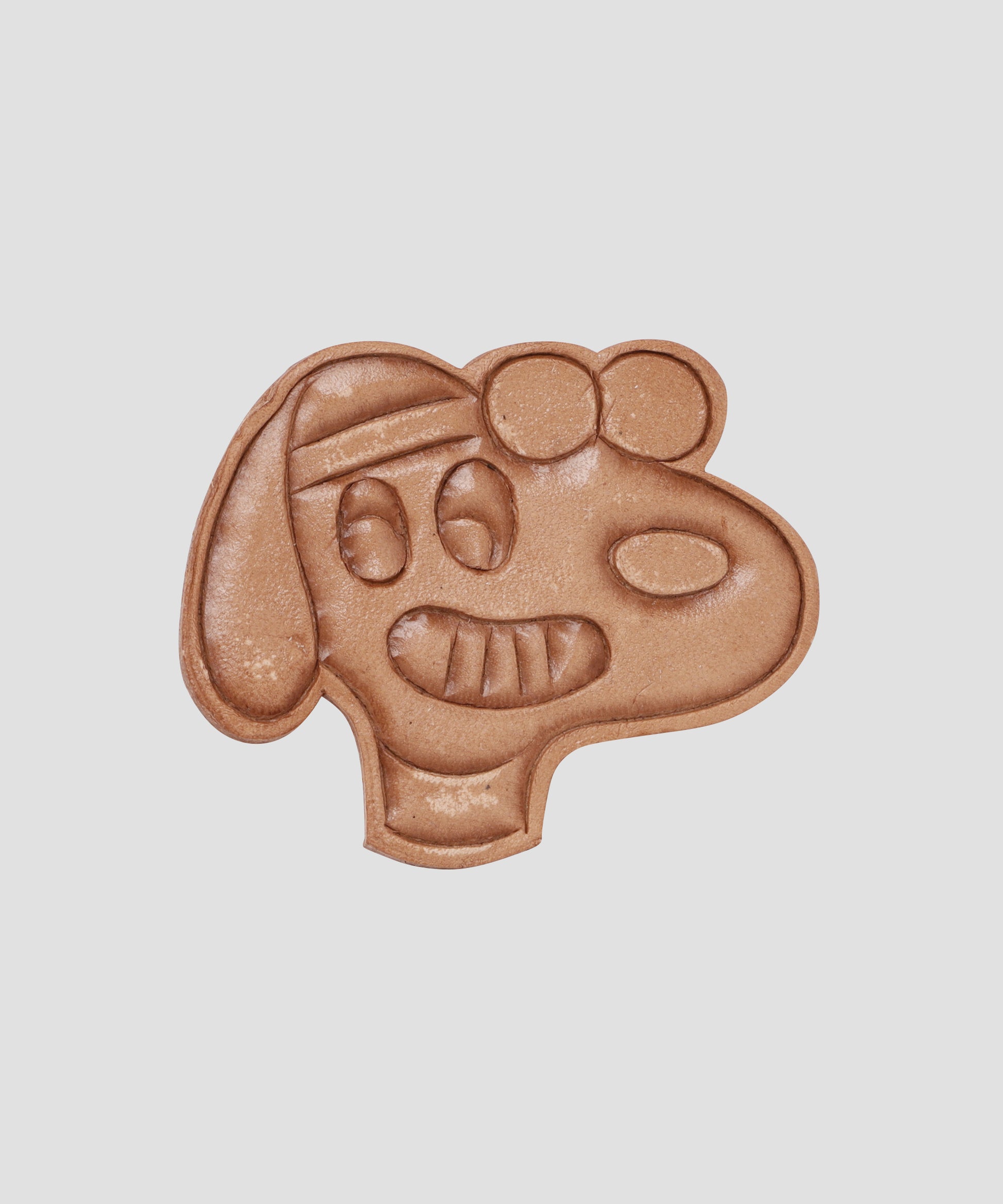 レザーカービングで作製した某有名キャラクター(犬)型のピンズ。