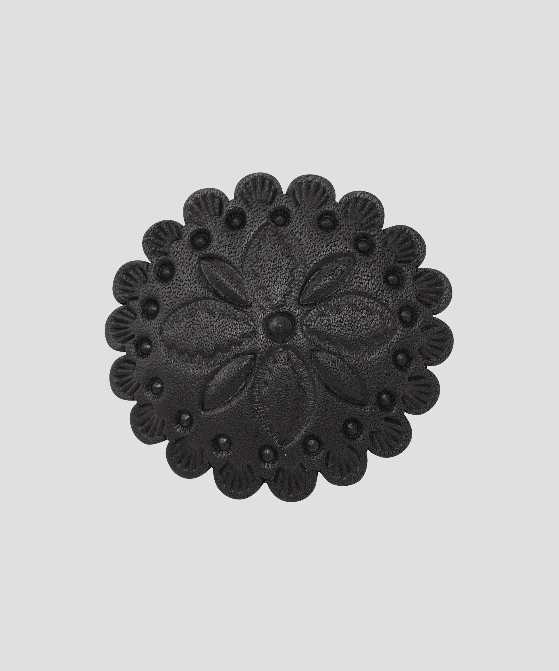 レザーカービングで作製したコンチョ型のピンズのラージサイズ。