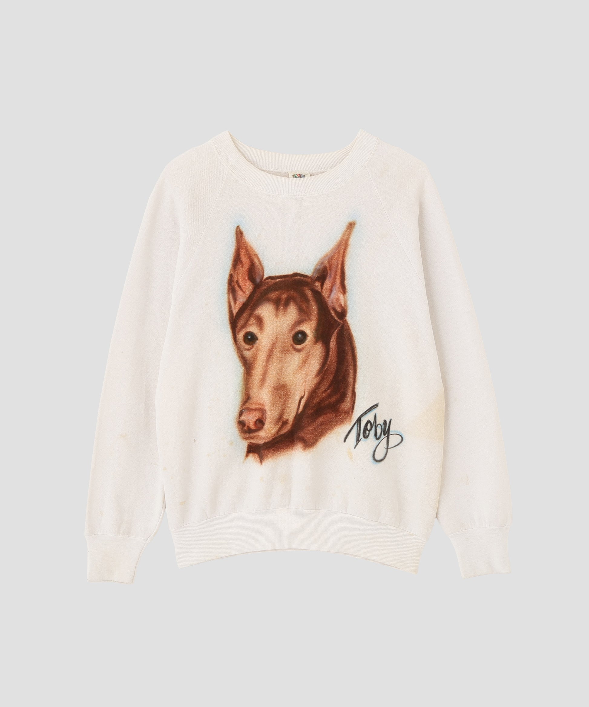 フロントに大きく描かれたドッグアートが目を惹く、クルーネックスウェット。 *コンディション:前身頃、後見頃、袖に汚れあり