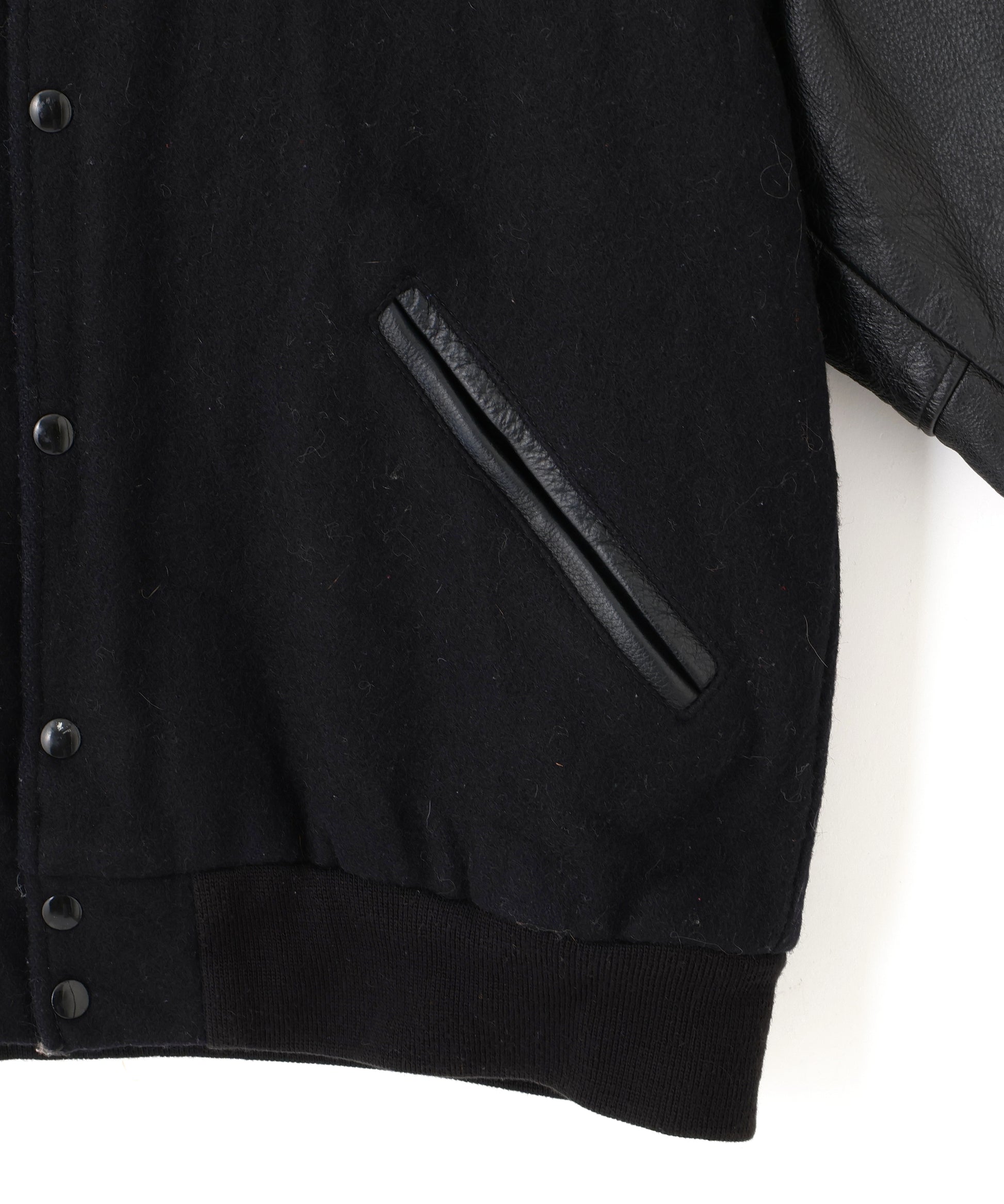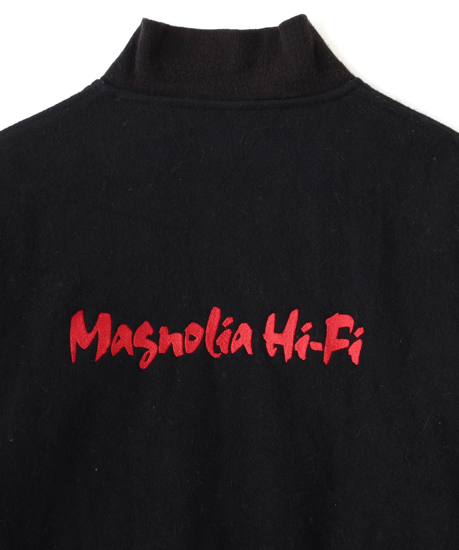 ブラックボディにレザースリーブを組み合わせた、クラシックなアメリカンスタイルのスタジアムジャケット。フロントにネーム刺繍、バックには「Magnolia Hi-Fi」ロゴ入りで存在感抜群。