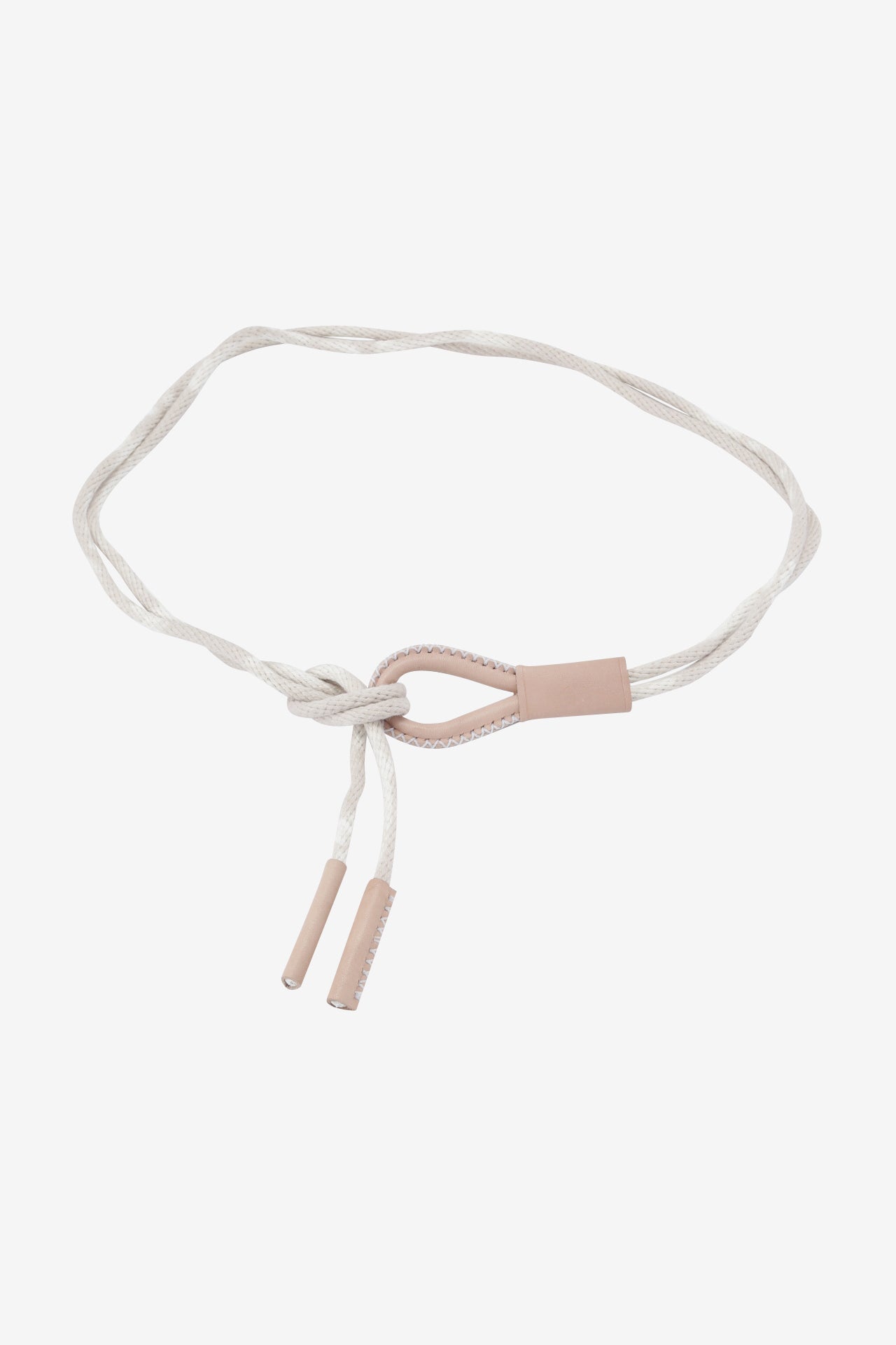 毎シーズン様々なコラボレーションを取り組んできたRooster King & Co., とのコラボレーションシリーズより、綿とレザーバックルのコンビネーションによるロープベルト。