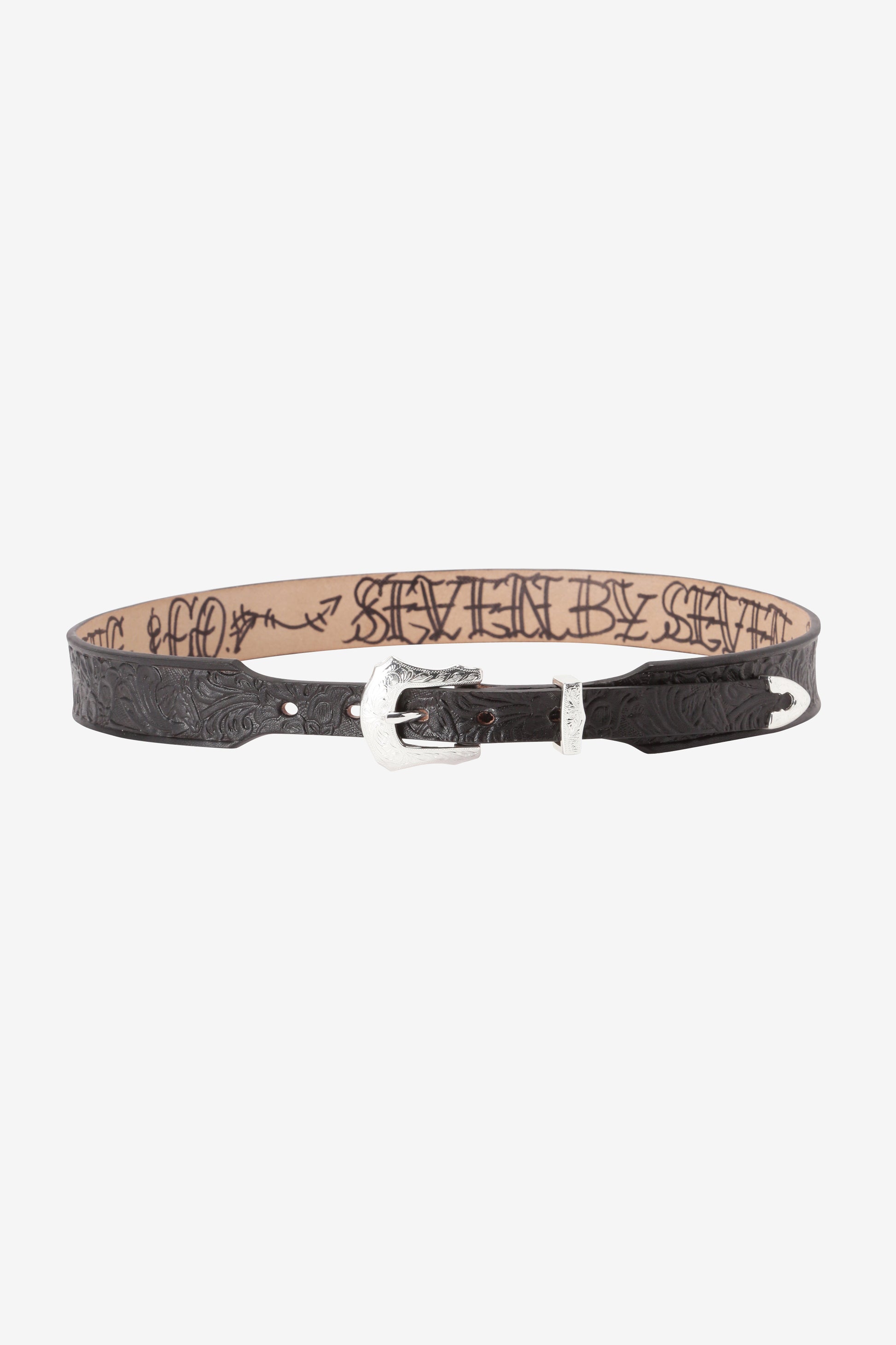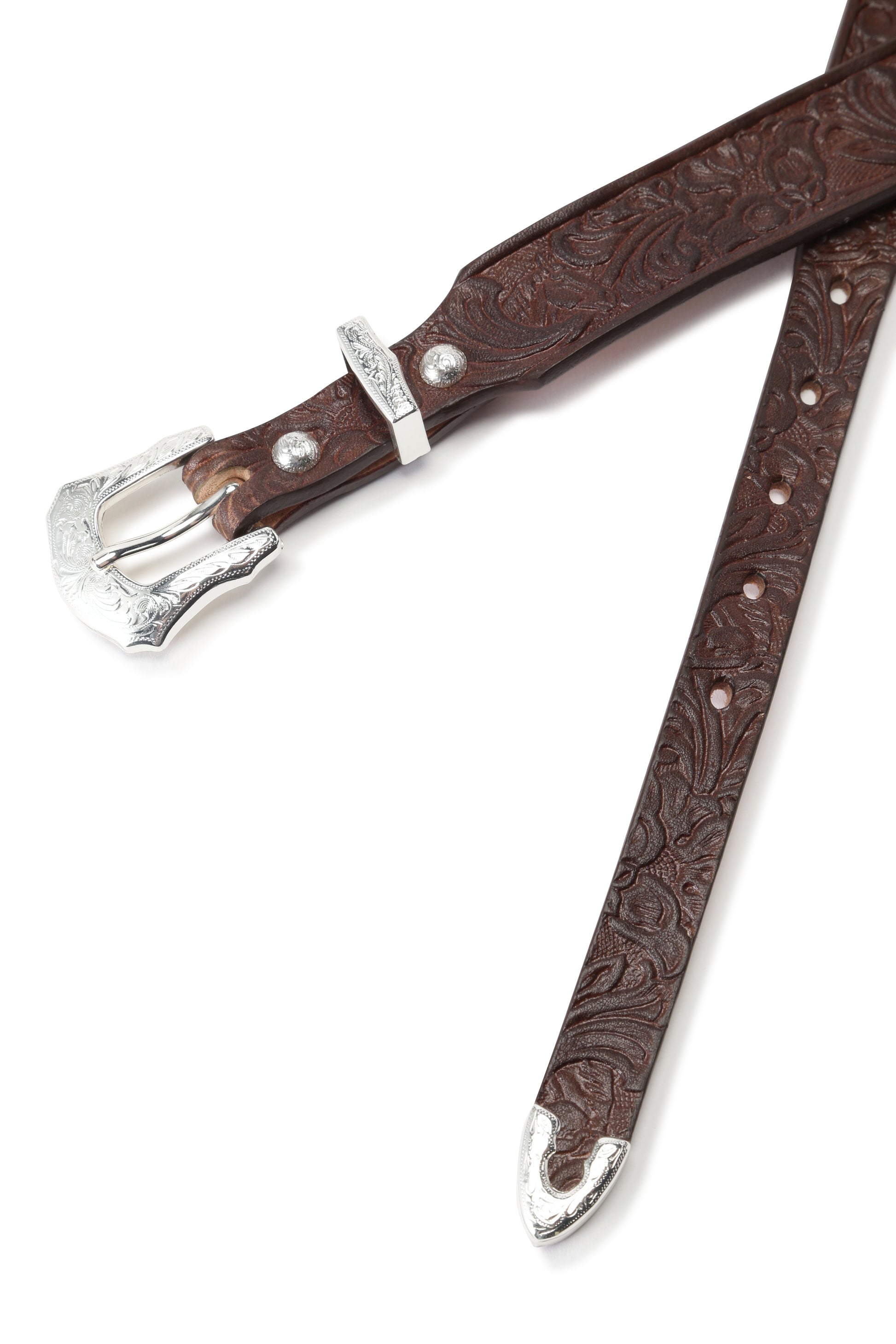 毎シーズン様々なコラボレーションを取り組んできたRooster King & Co., とのコラボレーションシリーズより、FLOWER 柄のレザーを使用したウェスタンベルトです。