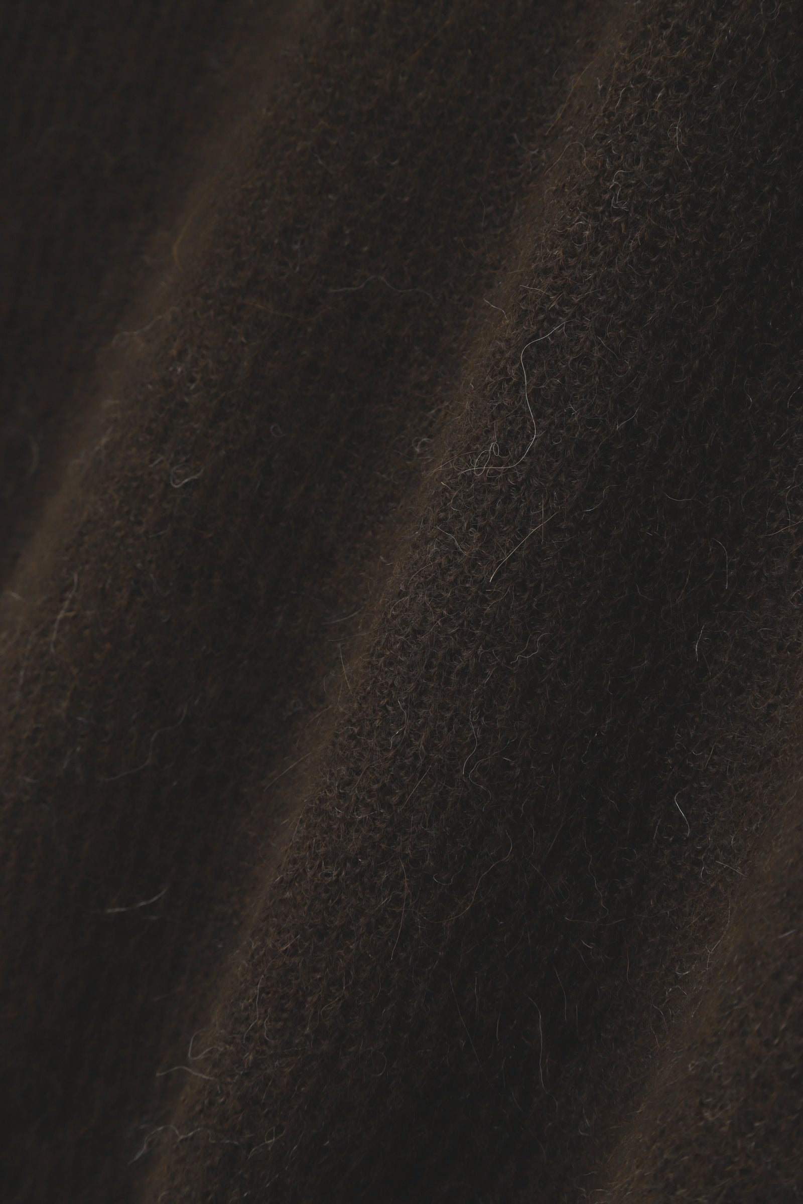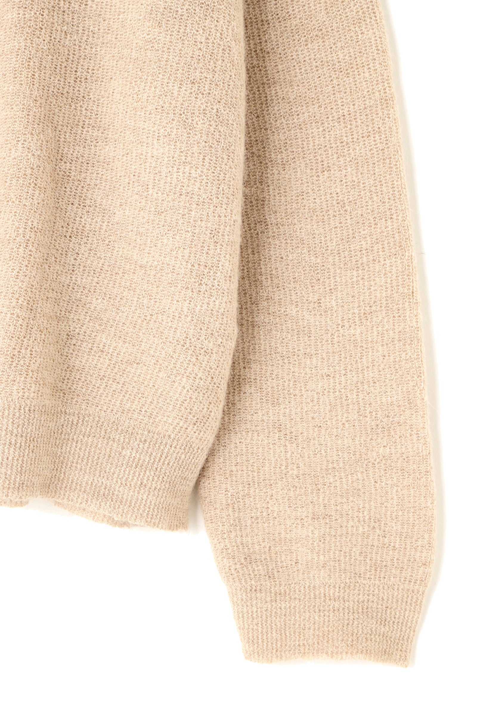 一切の染色をしていない分、アルパカ自身が自然界で生き抜くために本来持って生まれた、毛質の柔らかさとしっとり感、自然な光沢感は、着用時の存在感と上品さを高めてくれます。また前述した特有の毛質によって、保温性と保湿力に優れているため、防寒面でも存分に力を発揮してくれます。プレーンながらも表情のある編地で表現することで、様々なスタイルにも取り入れやすく、存在感も演出してくれます。カジュアルな印象のボトムスでも、ドレッシーな印象のボトムスでも幅広くスタイルを演出できる存在感のある天然素材の贅沢なアルパカニットです。