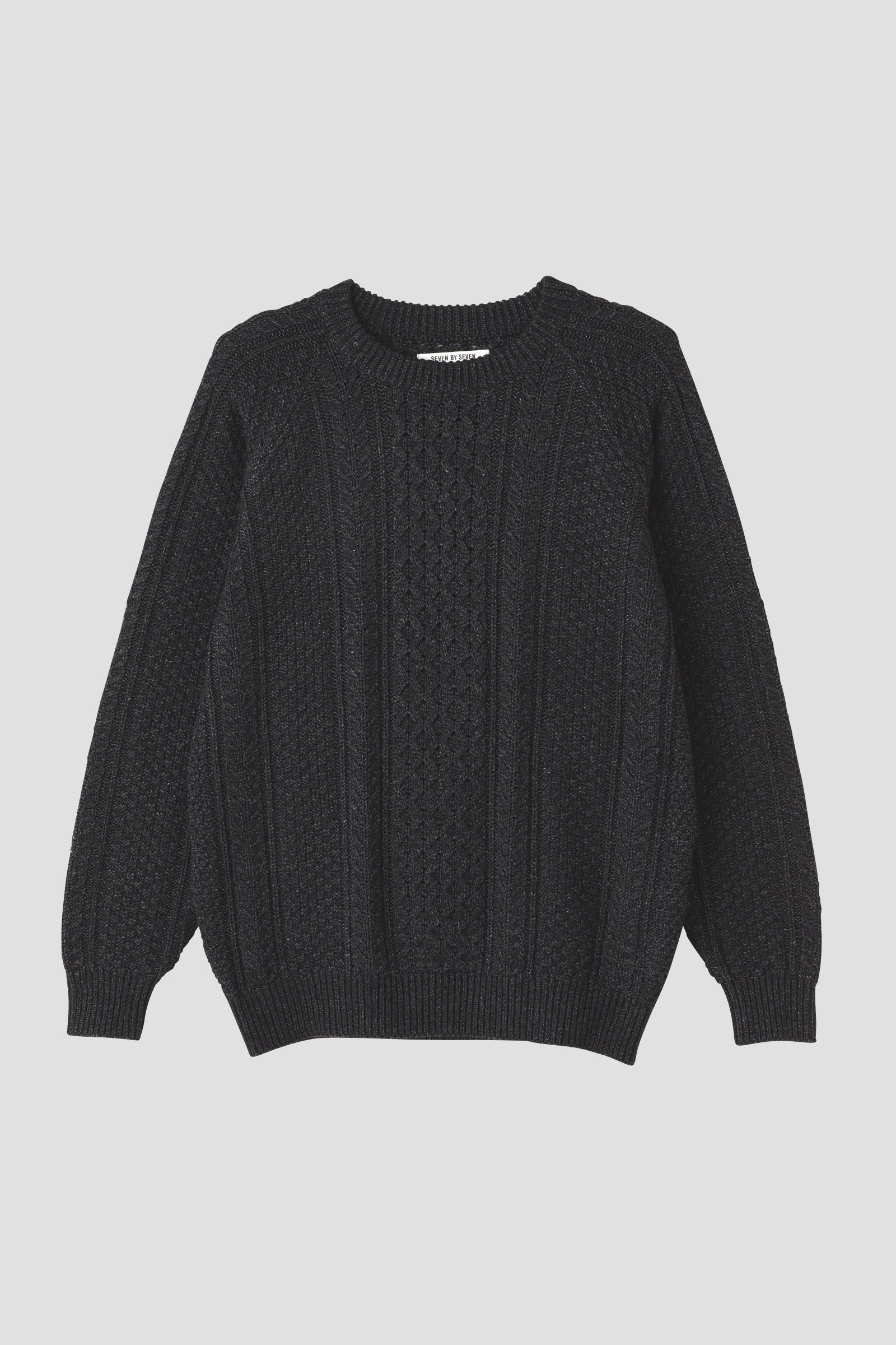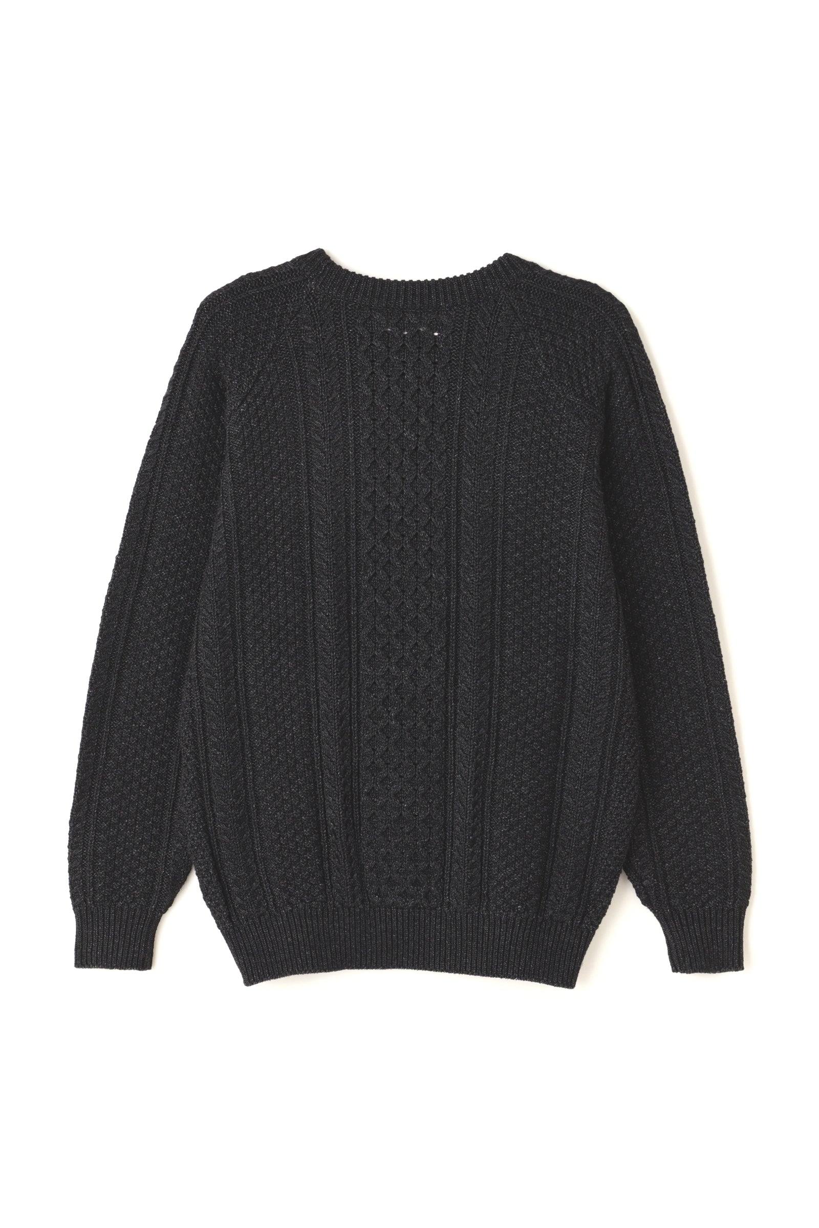 CREW NECK CABLE SWEATER -Indigo yarn-
