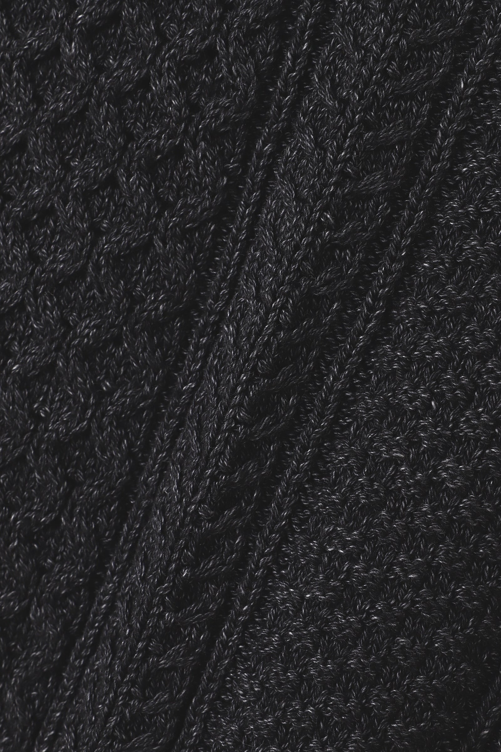 インディゴ糸を使用して作製したクルーネック型のケーブル編みニット。