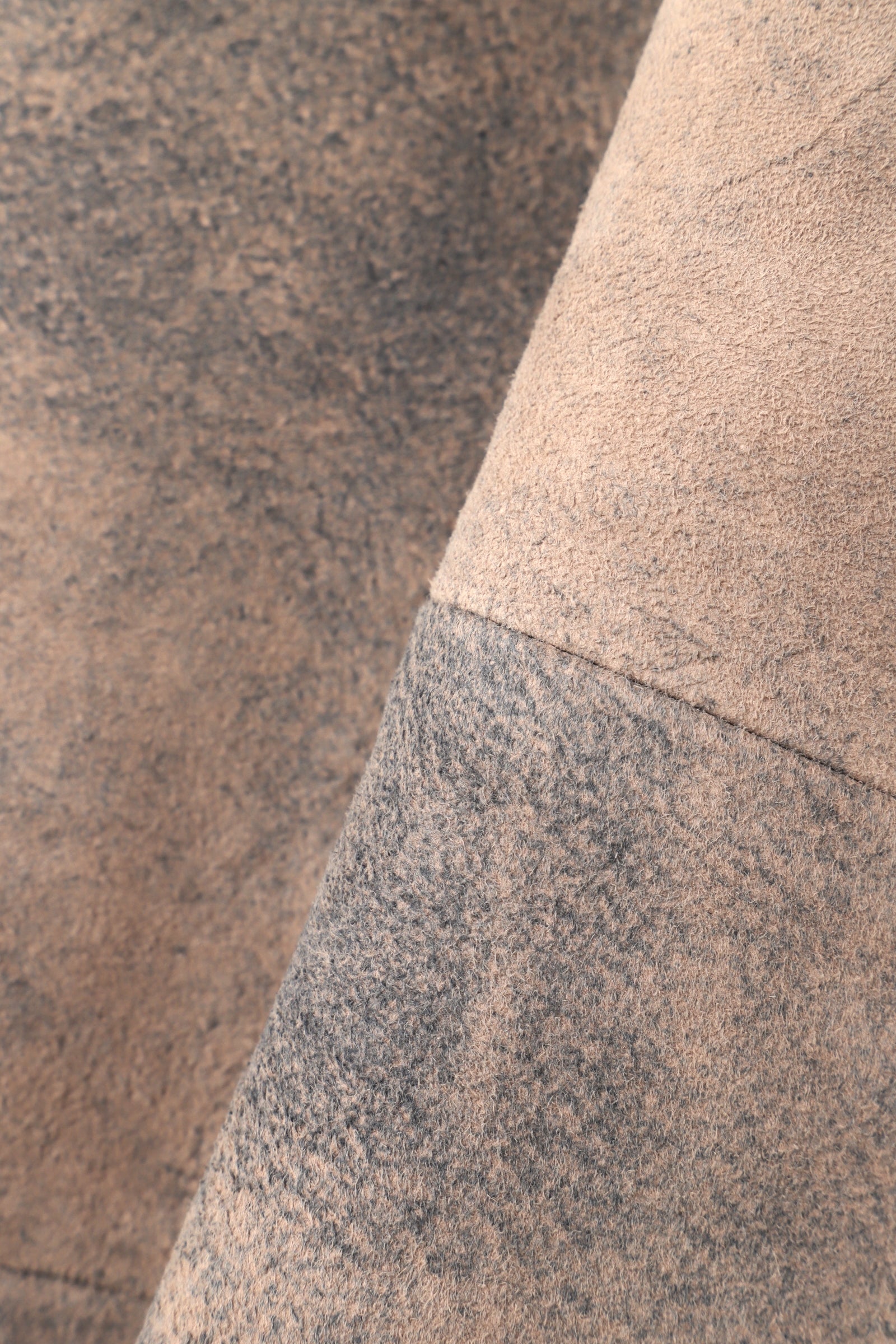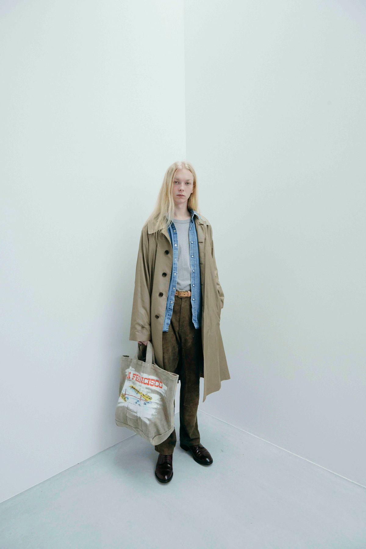 アメリカを代表する某有名ワークウェアブランドの名作をモチーフに、ブランド独自のシルエットに落とし込んだアイテムは、親しみのあるデザインをベースにしながらも、レザー特有の存在感も併せ持った表情となりました。SEVEN BY SEVENが毎シーズン提案してきたレザープロダクトは、シーズンを重ねるごとにブランドのシグネチャーのようになってきました。今作のような加工が施せたのも、毎シーズン新たな可能性に注力してきたからこその仕上がりです。ブランドが大切にしているカジュアルな中にも見え隠れする上品さを体現したアイテムですので、同素材を用いたトップスとセットアップで着用して頂くのも勿論ですが、相反するような表情の上質な素材のトップスとも不思議とスタイルの纏まる仕上がりとなっています。今シーズンの顔とも言えるアンティーク加工レザーのシリーズ。幅広いスタイルにマッチしていきますので、様々なアイテムとの組み合わせを想像しながら、是非ともお楽しみください。