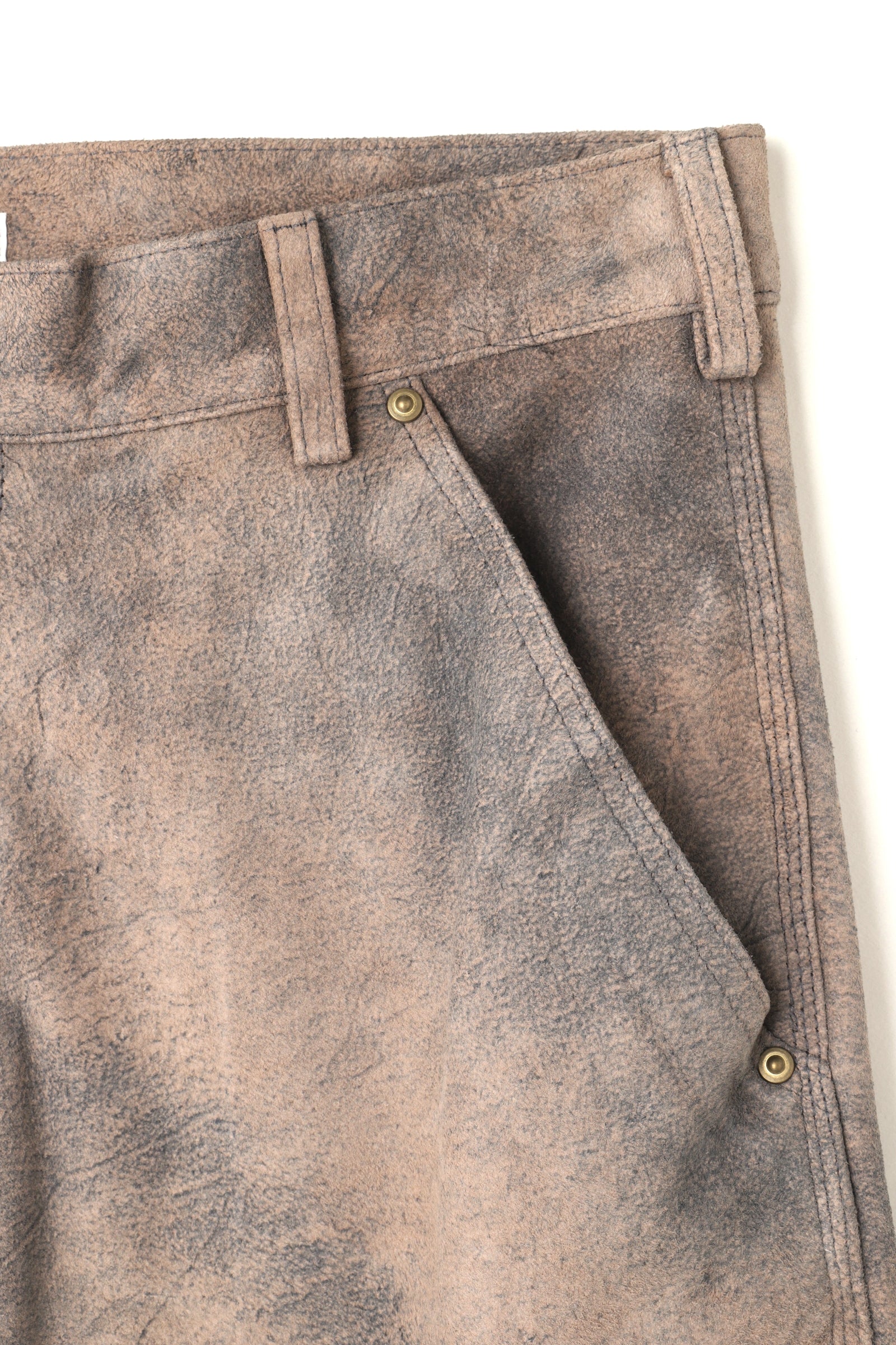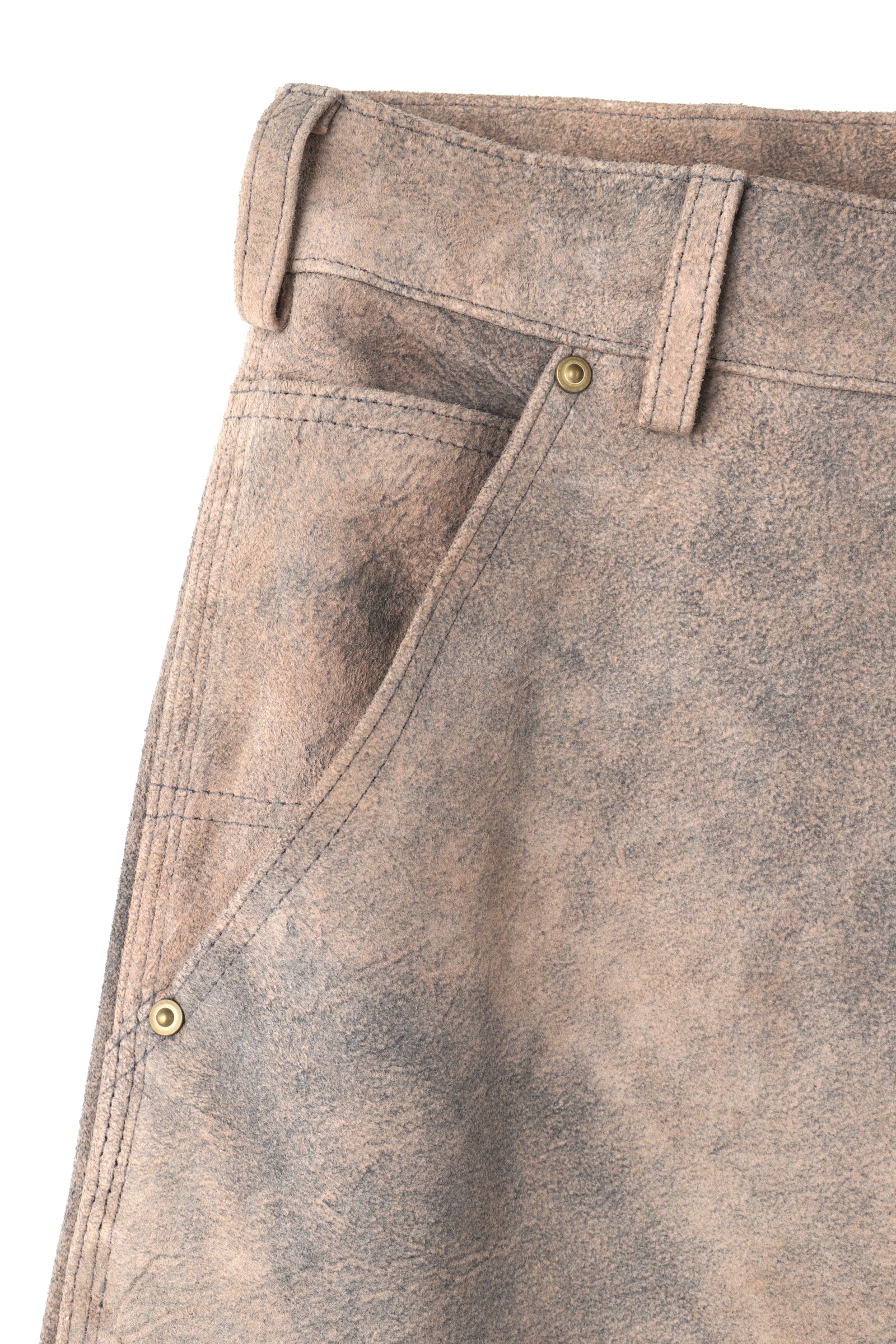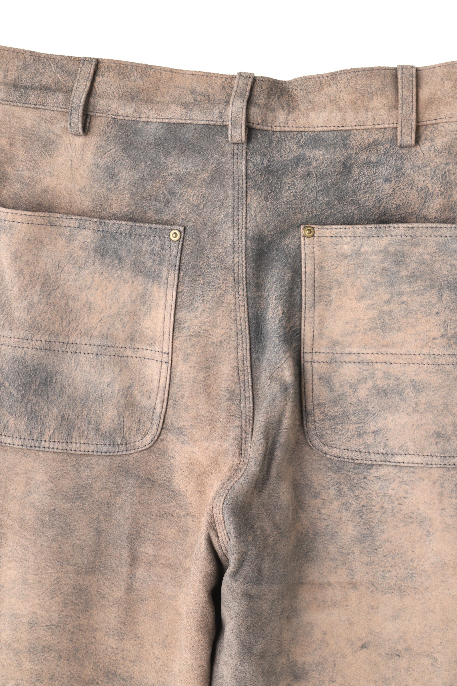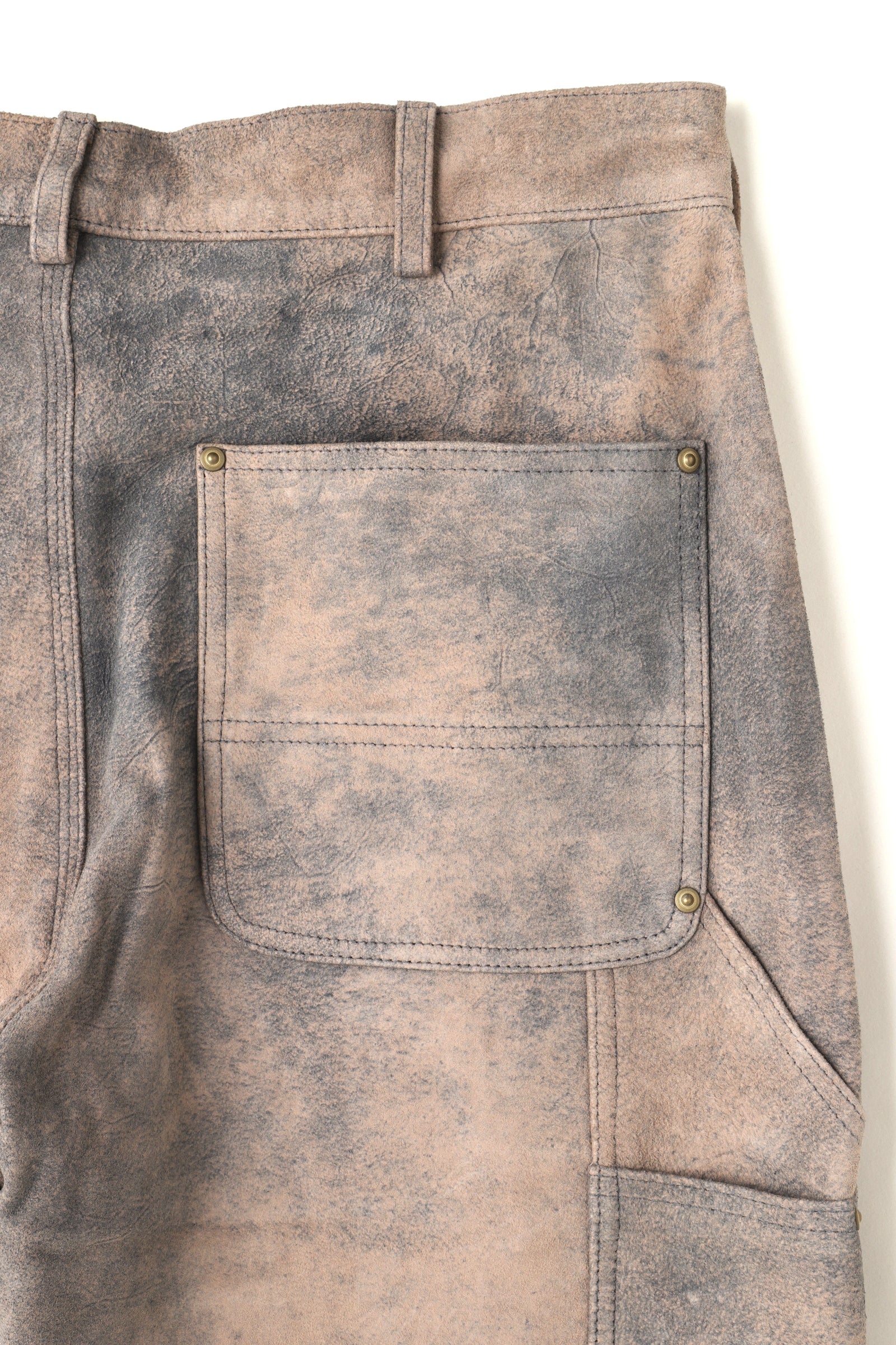 LEATHER DOUBLE KNEE PANTS - Goat suede Antique finish -