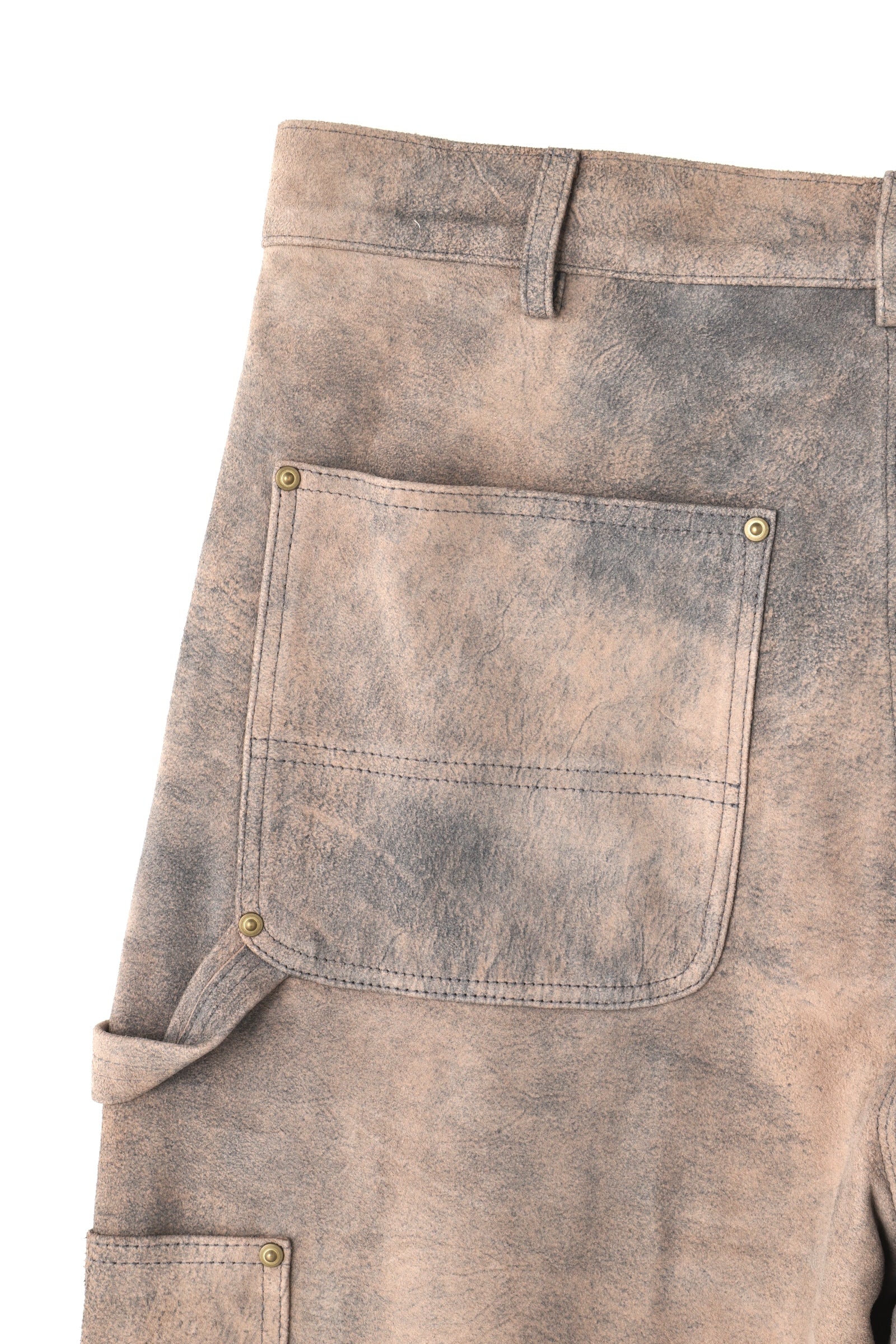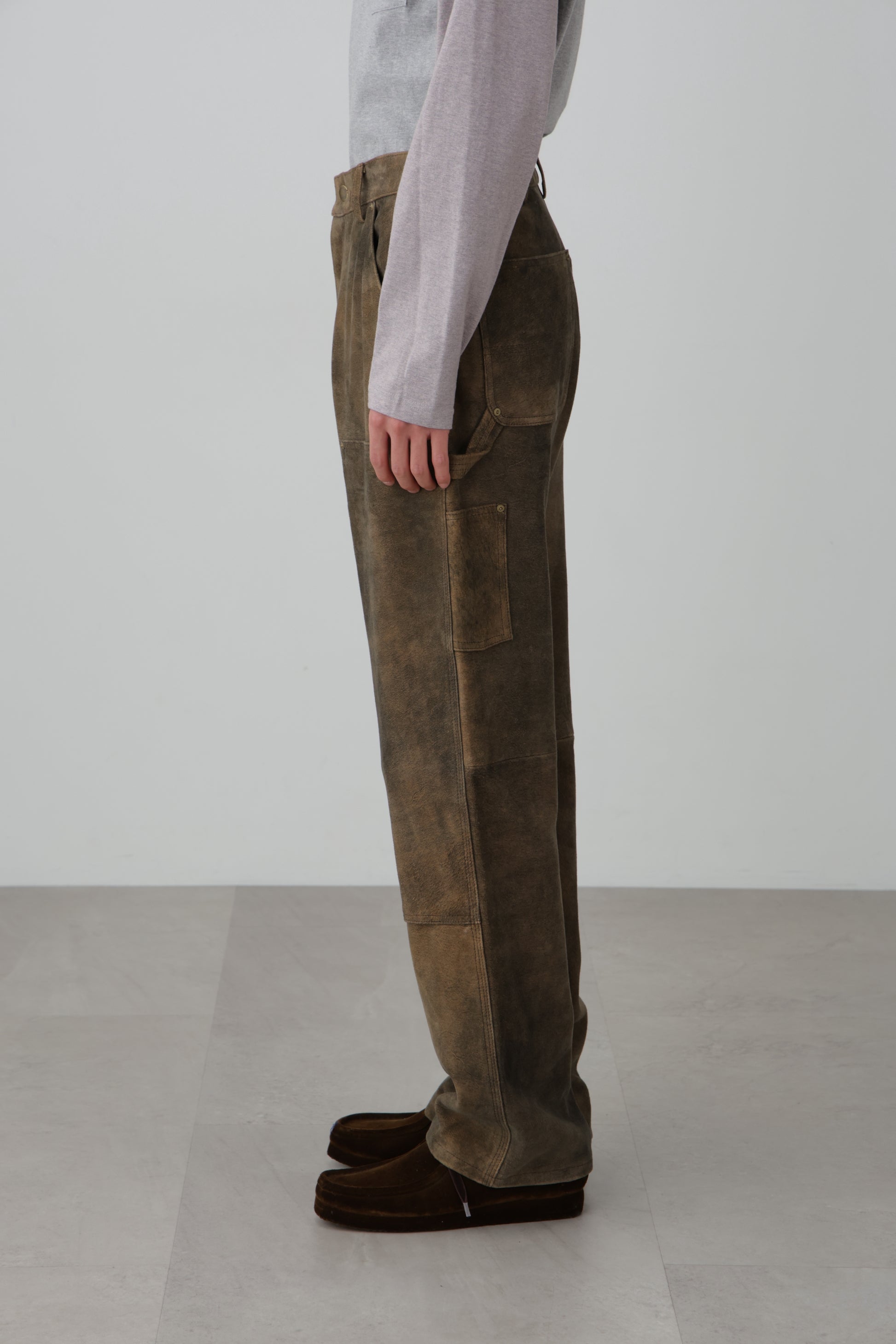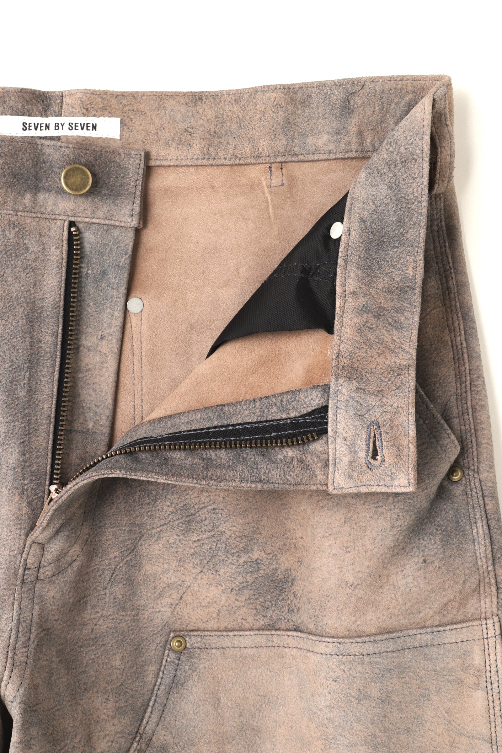 LEATHER DOUBLE KNEE PANTS - Goat suede Antique finish -