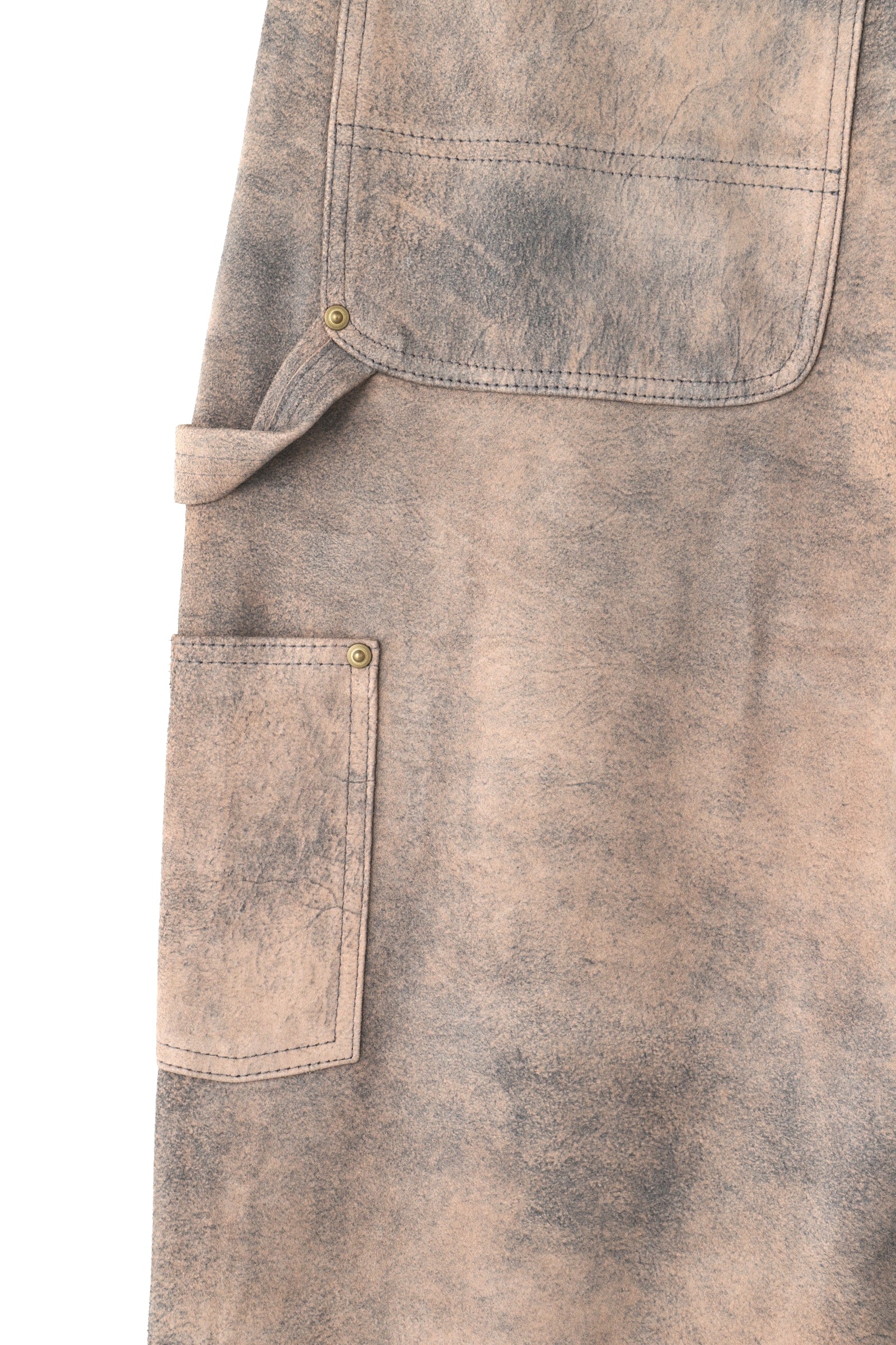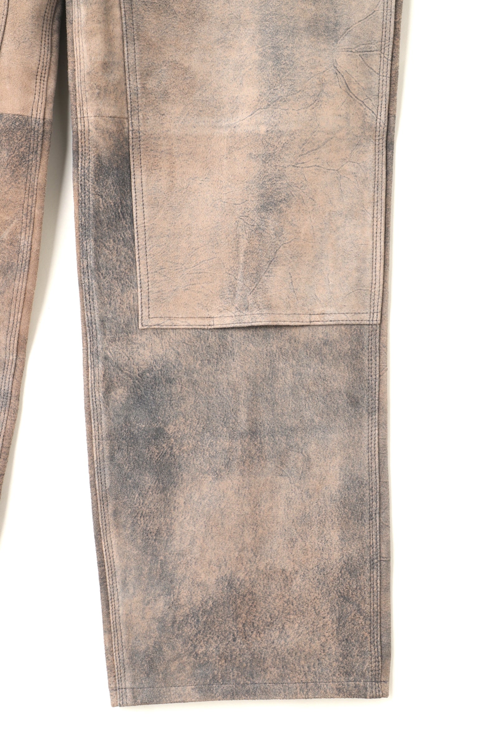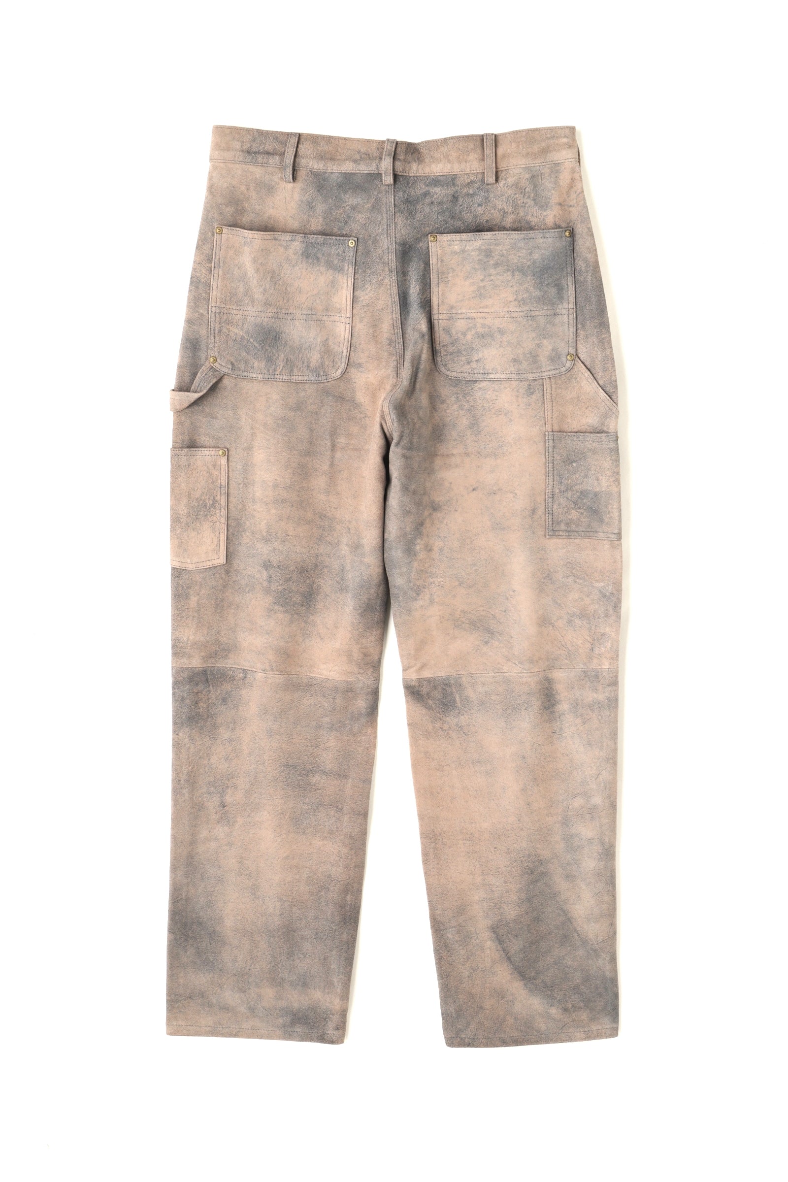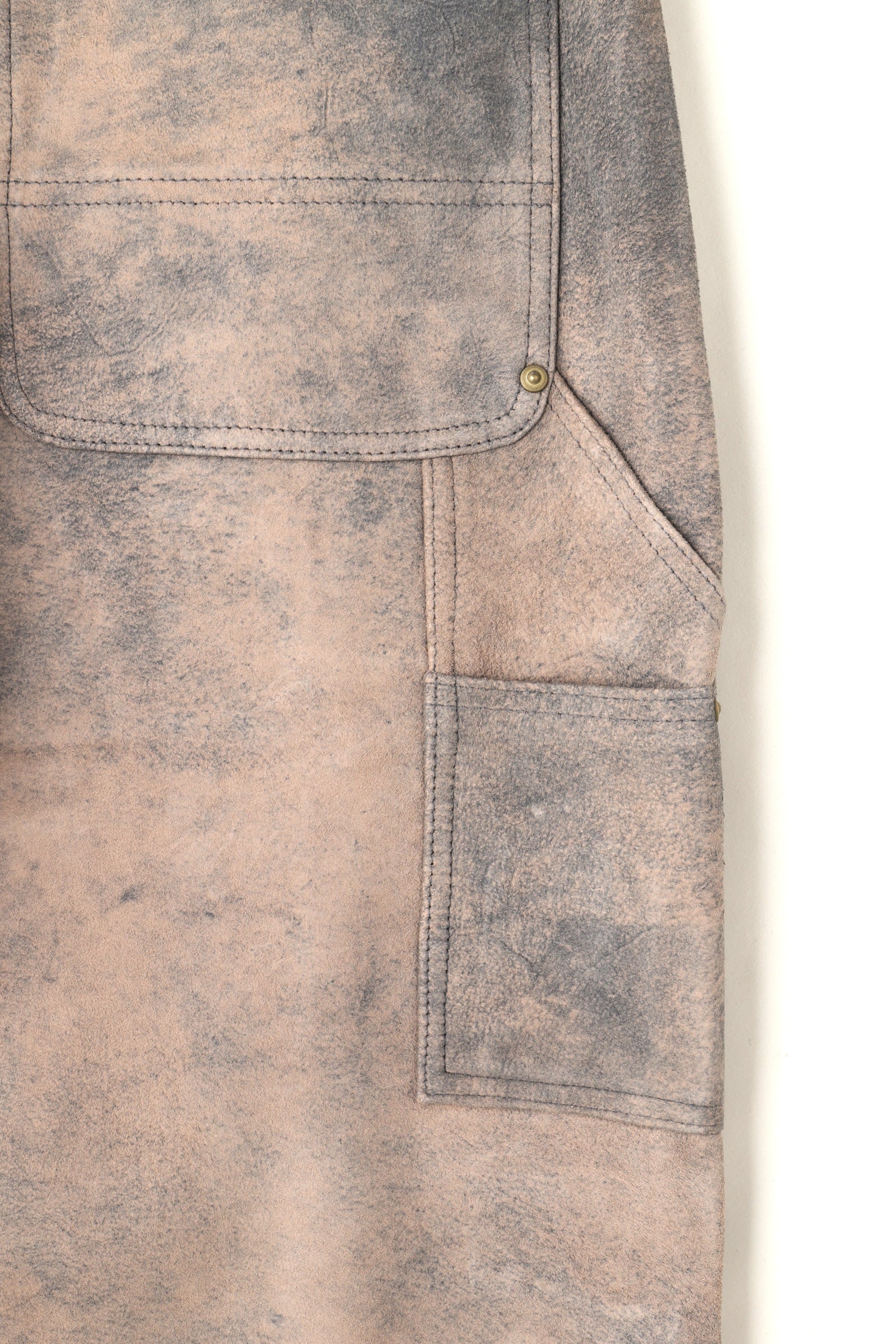 LEATHER DOUBLE KNEE PANTS - Goat suede Antique finish -