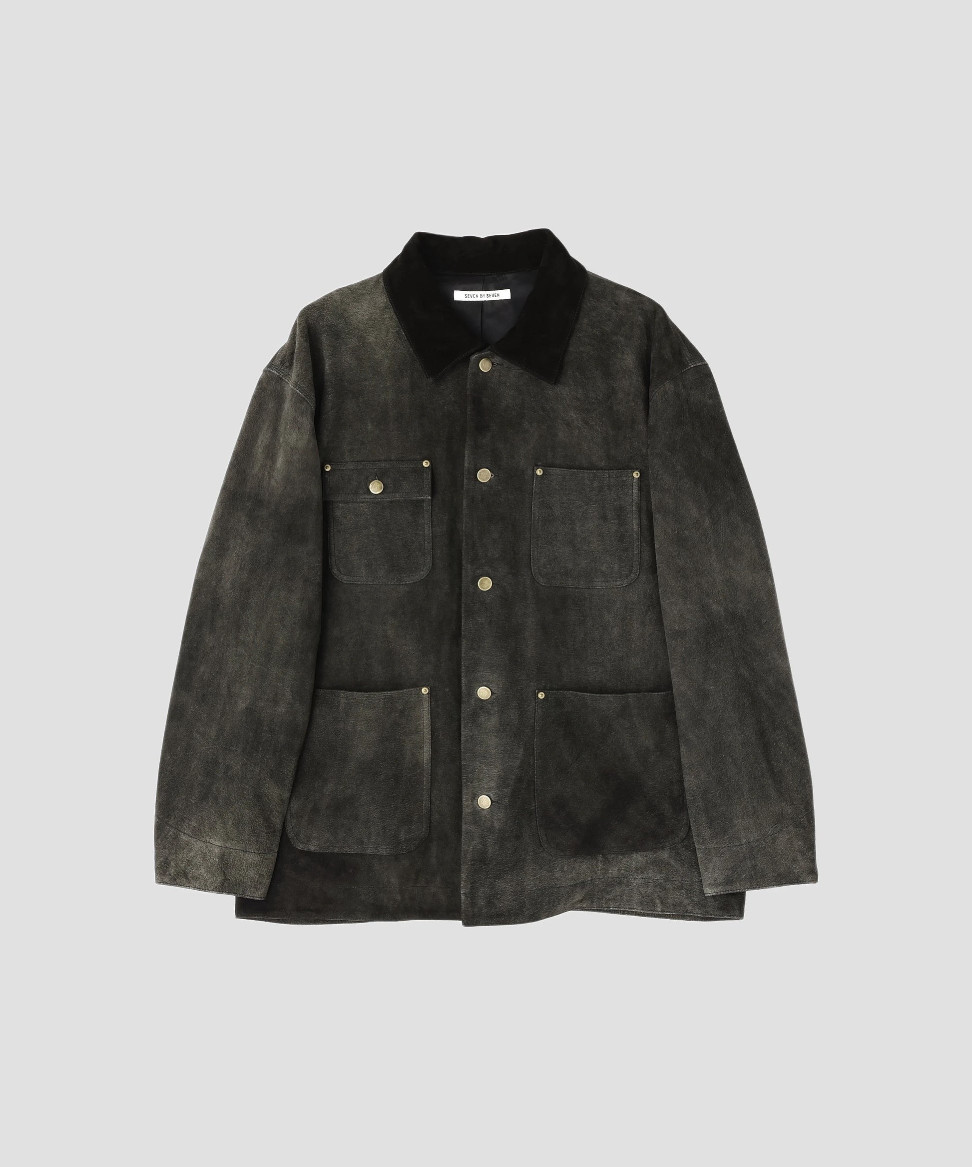 LEATHER MICHIGAN CHORE COAT ‐Goat suede Antique finish‐