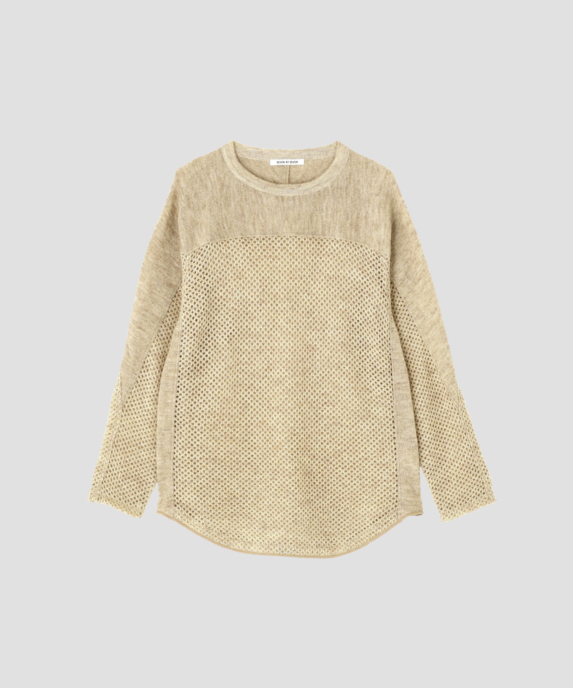 SWITCHING FOOTBALL MOHAIR KNIT TEE ‐Mesh crochet‐