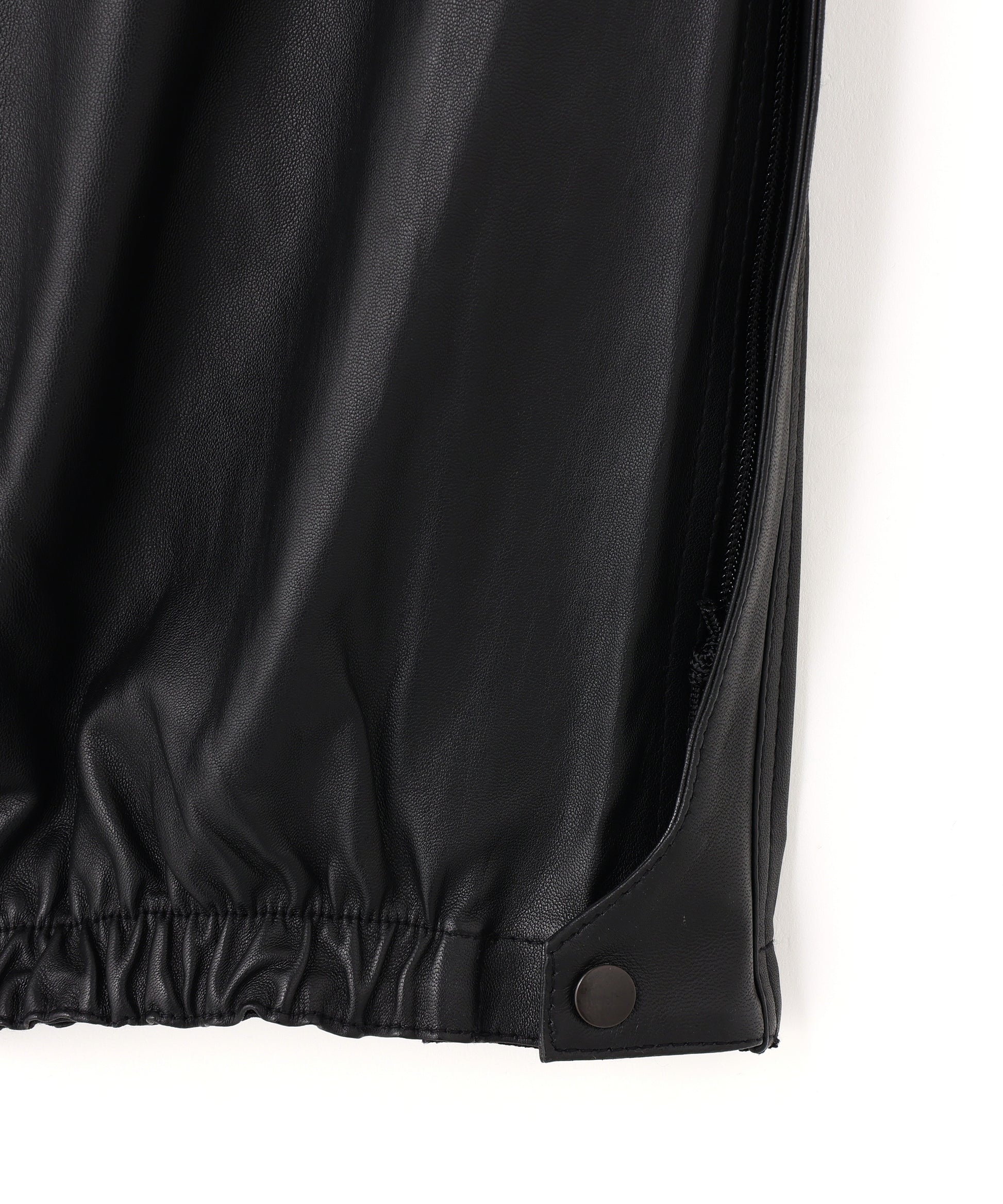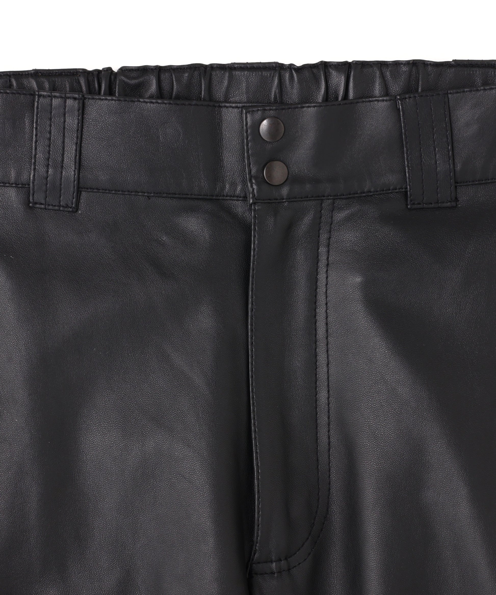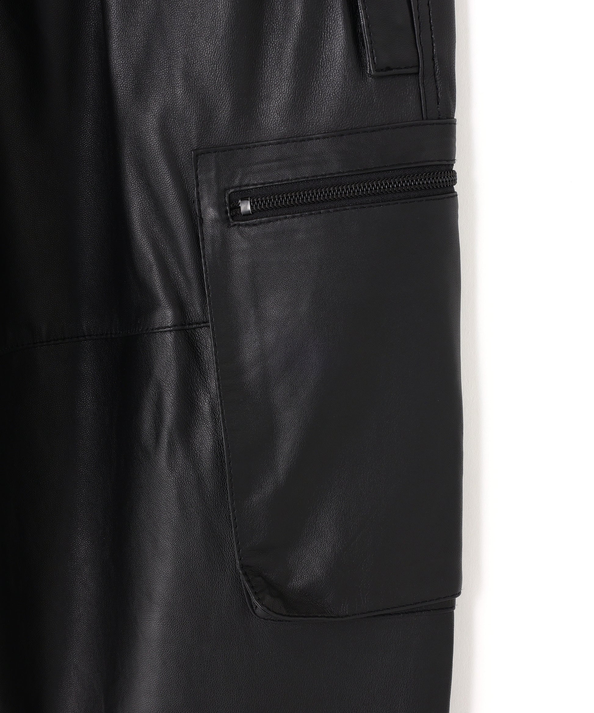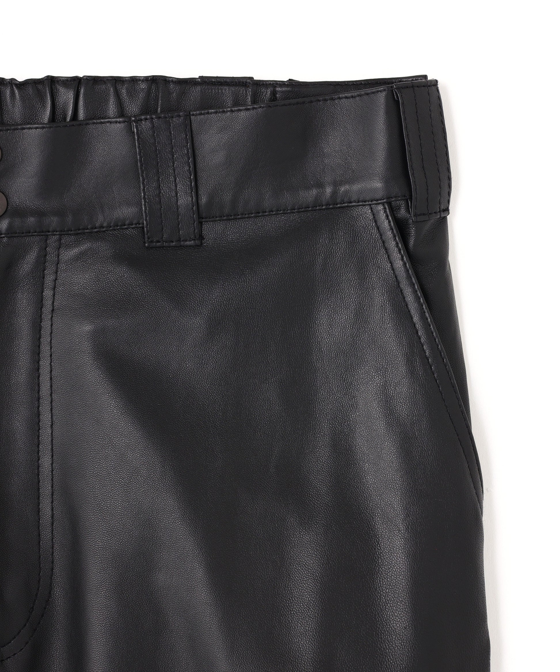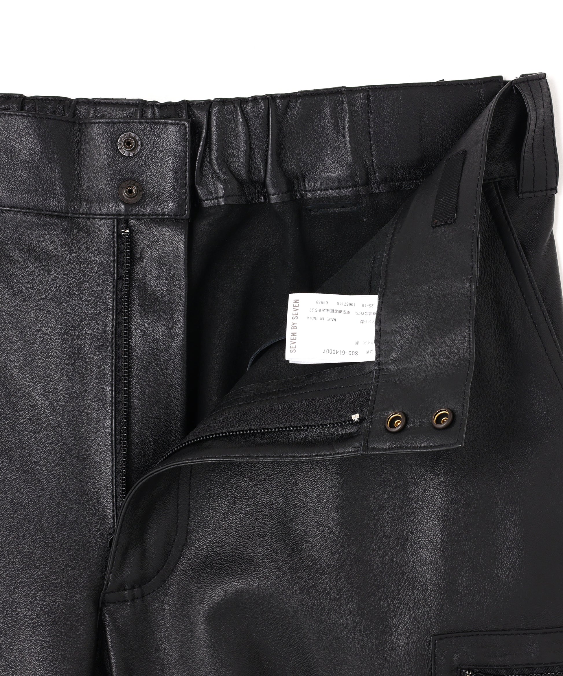 本来、オーバーパンツに求める役割でもある防風性や撥水性の機能には到底及ばないながらも、ファッション性に特化した ブランドらしいアプローチの遊び心が感じられる”ナイロン風”のレザーで作製したミリタリーディテールのパンツです。