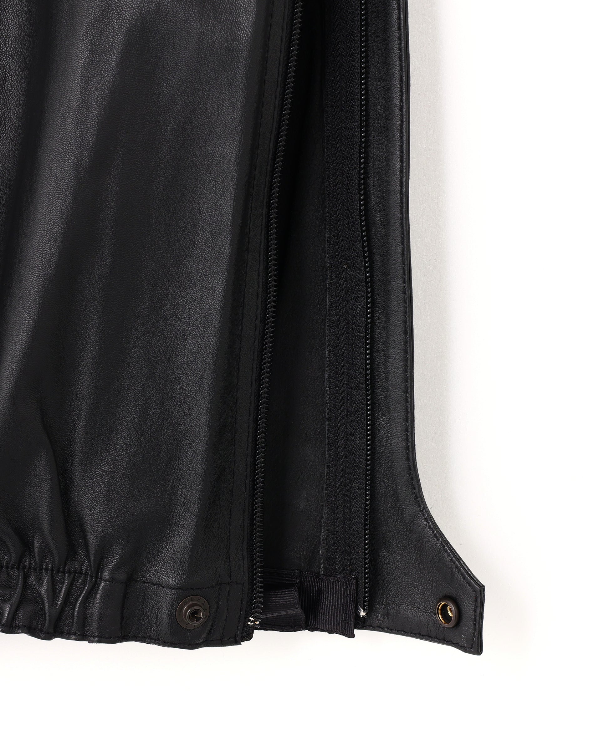 産地特有の素材特性を活かして、0.3㎜という極限の薄さまで革を漉くことで、ナイロンライクな表情の革に仕上げました。また、薄さと表情を活かすために、敢えて、一枚仕立てで作製しています。