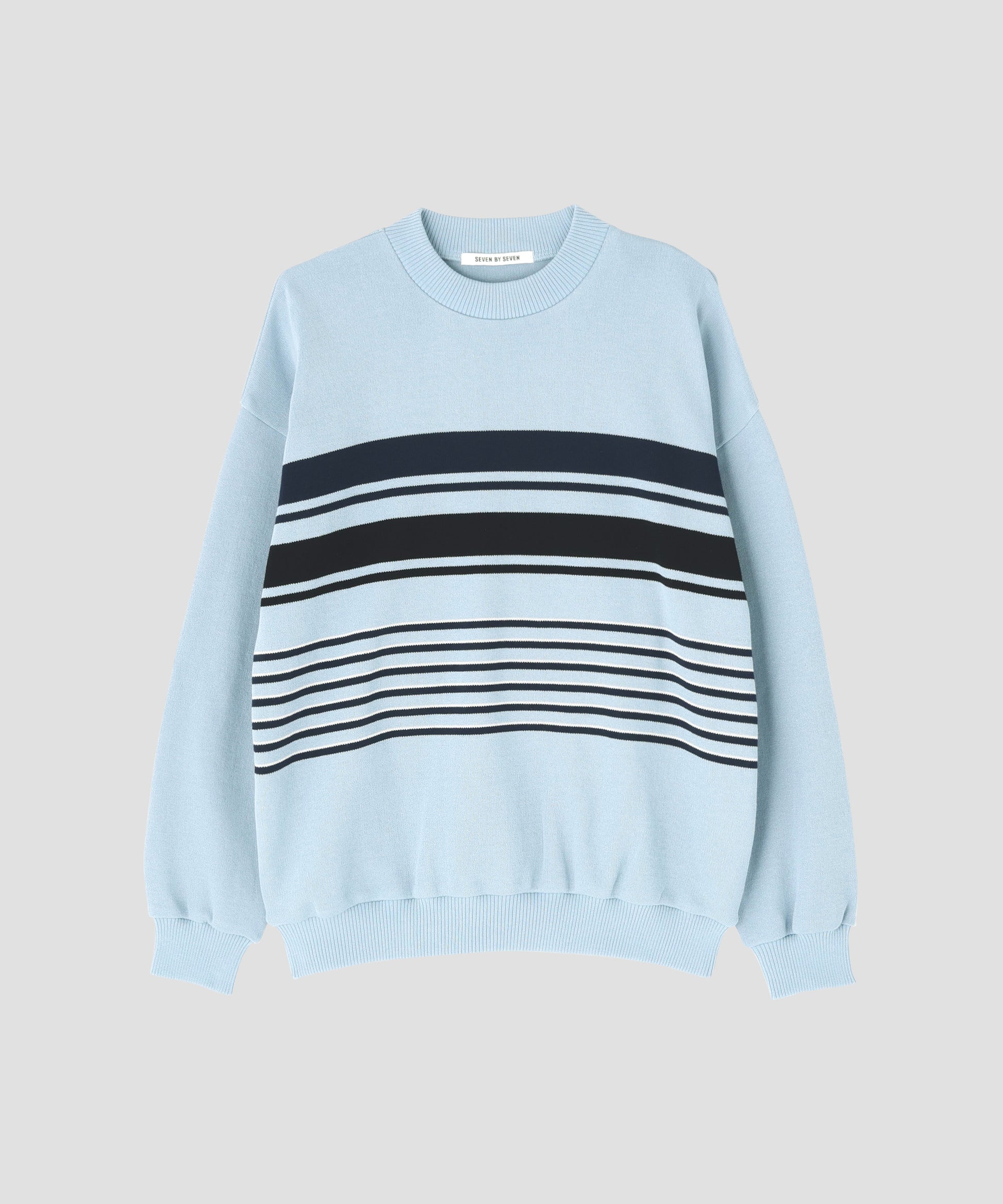 CREW NECK STRIPE KNIT SWEATER ‐Cool touch Organic cotton‐