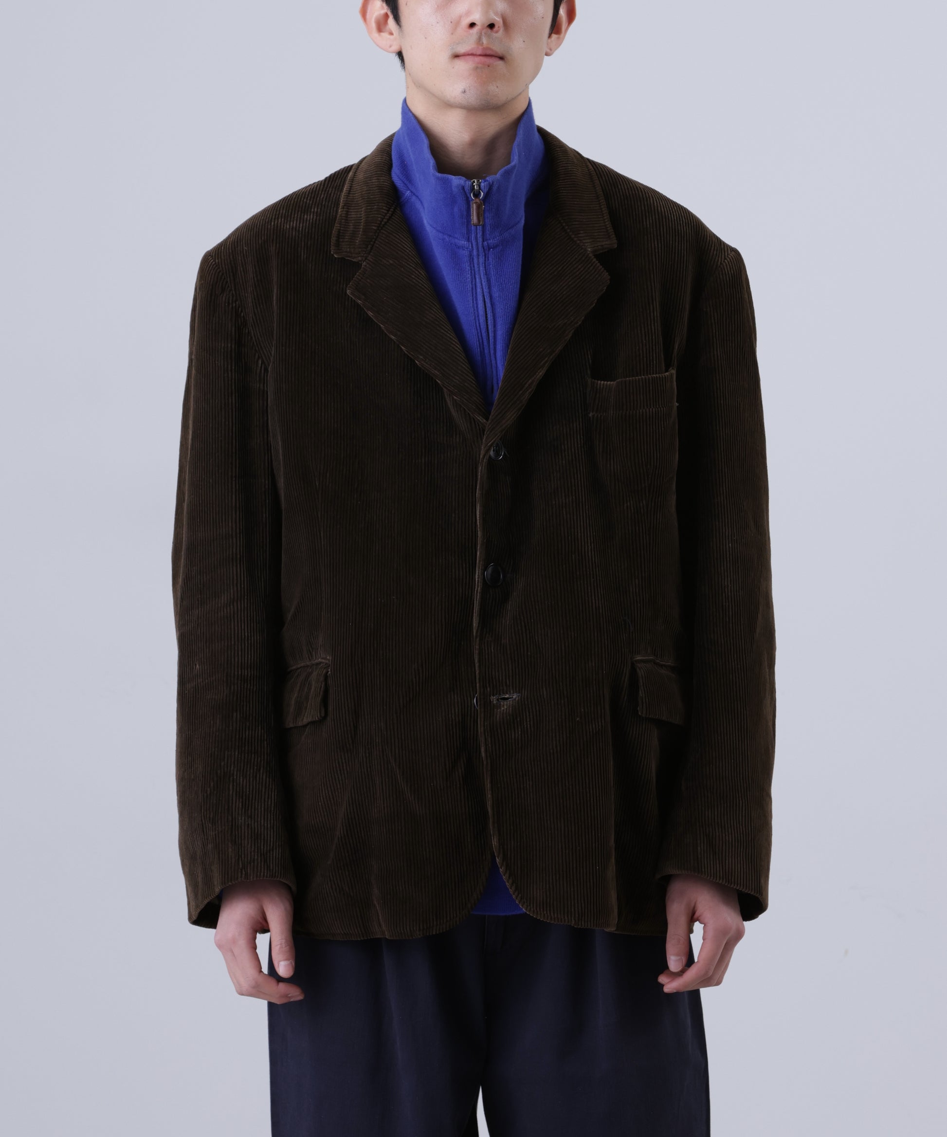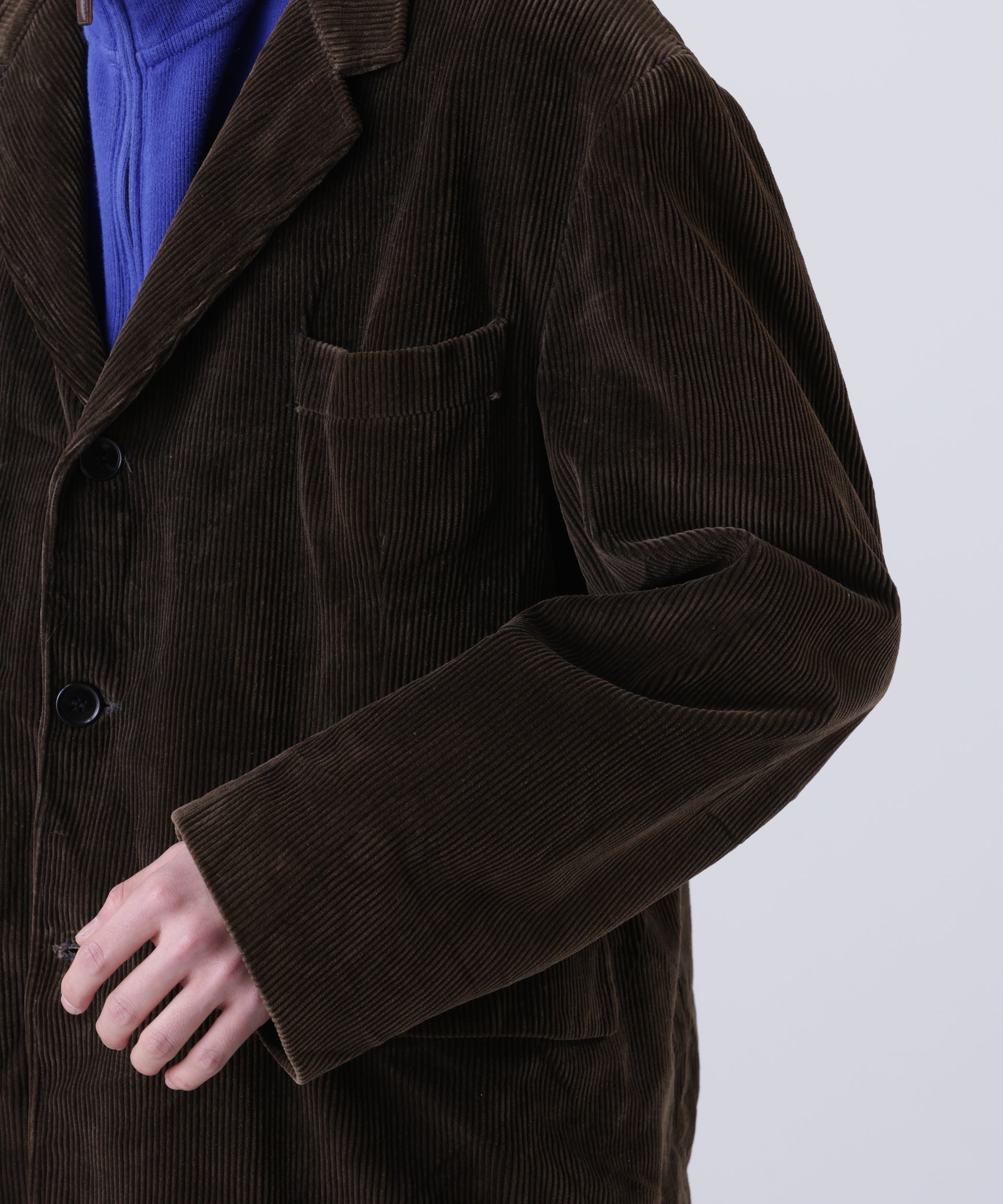 温かみのあるブラウンのコーデュロイ素材を使用した、クラシカルなテーラードジャケット。内側にはチェック柄のライニングが施され、見えない部分までこだわりを感じる一着。 *コンディション:袖裏に汚れあり