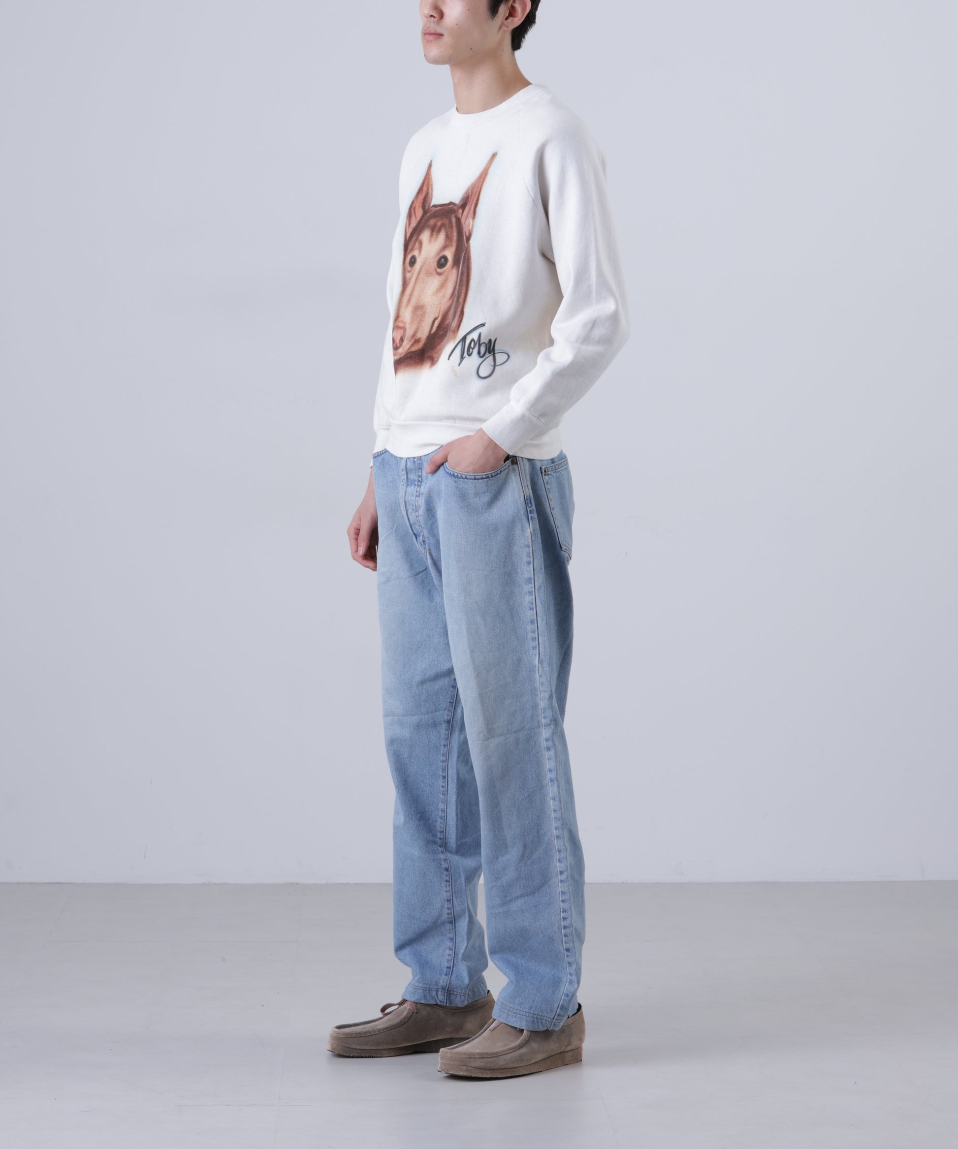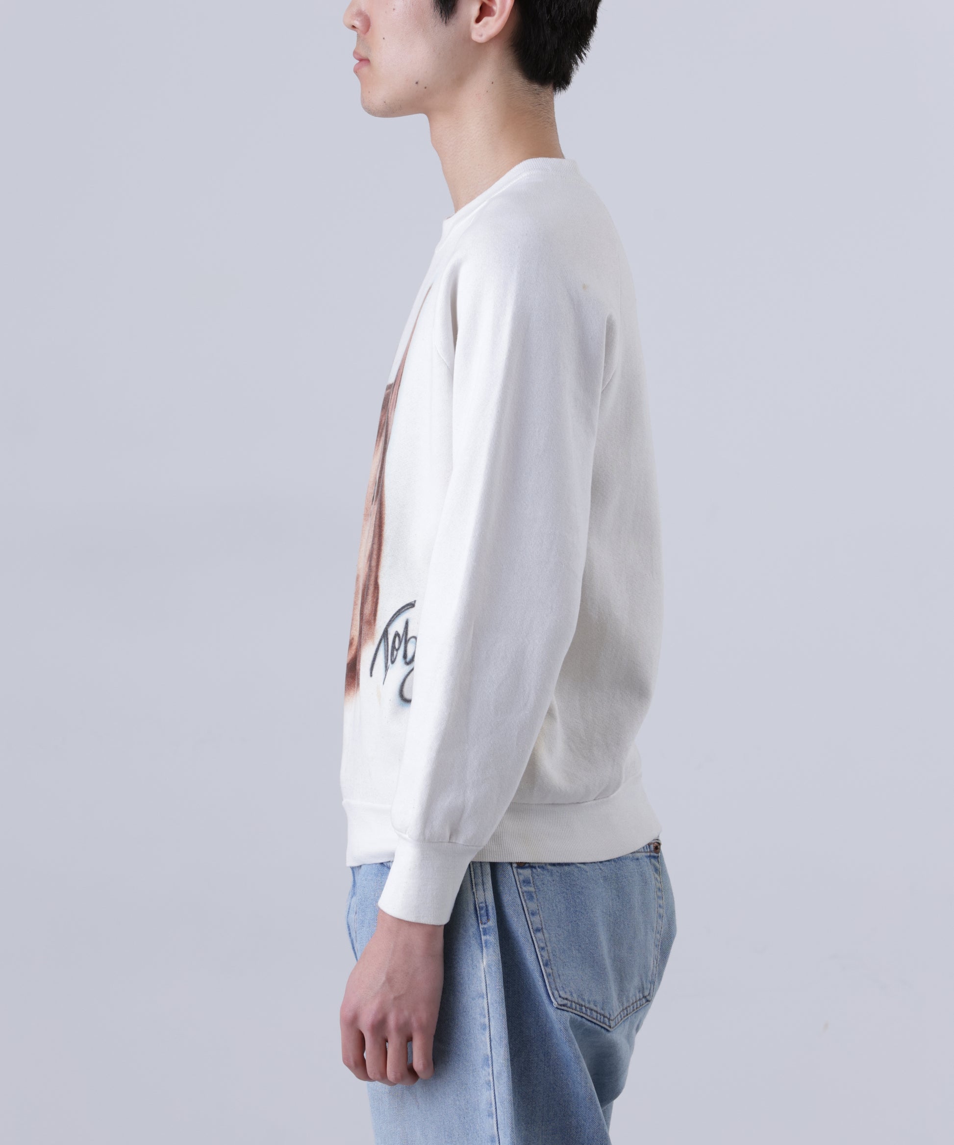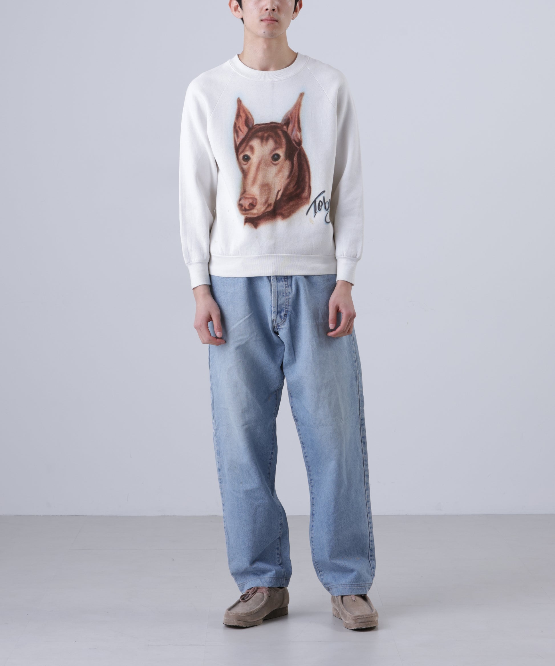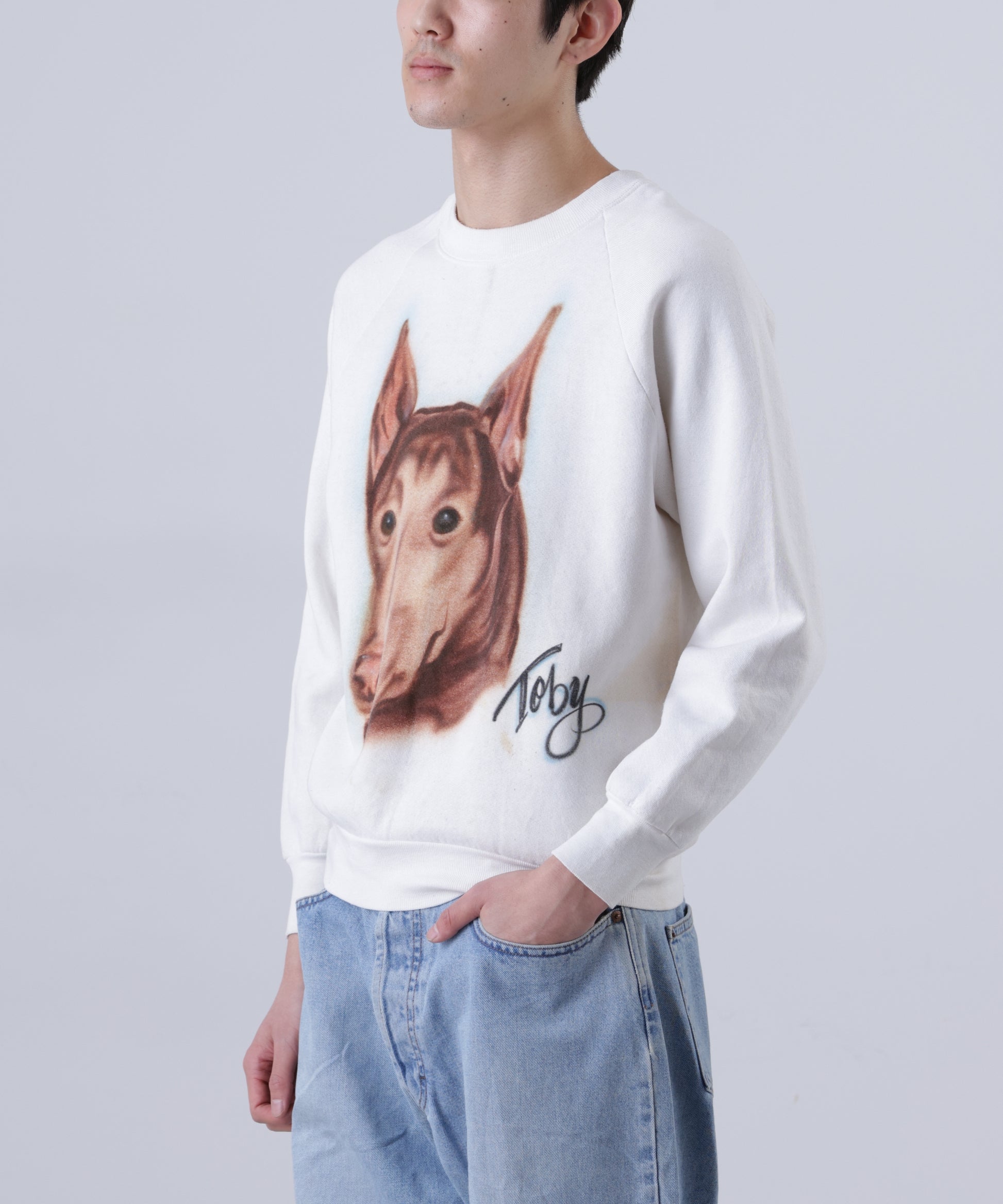 フロントに大きく描かれたドッグアートが目を惹く、クルーネックスウェット。 *コンディション:前身頃、後見頃、袖に汚れあり