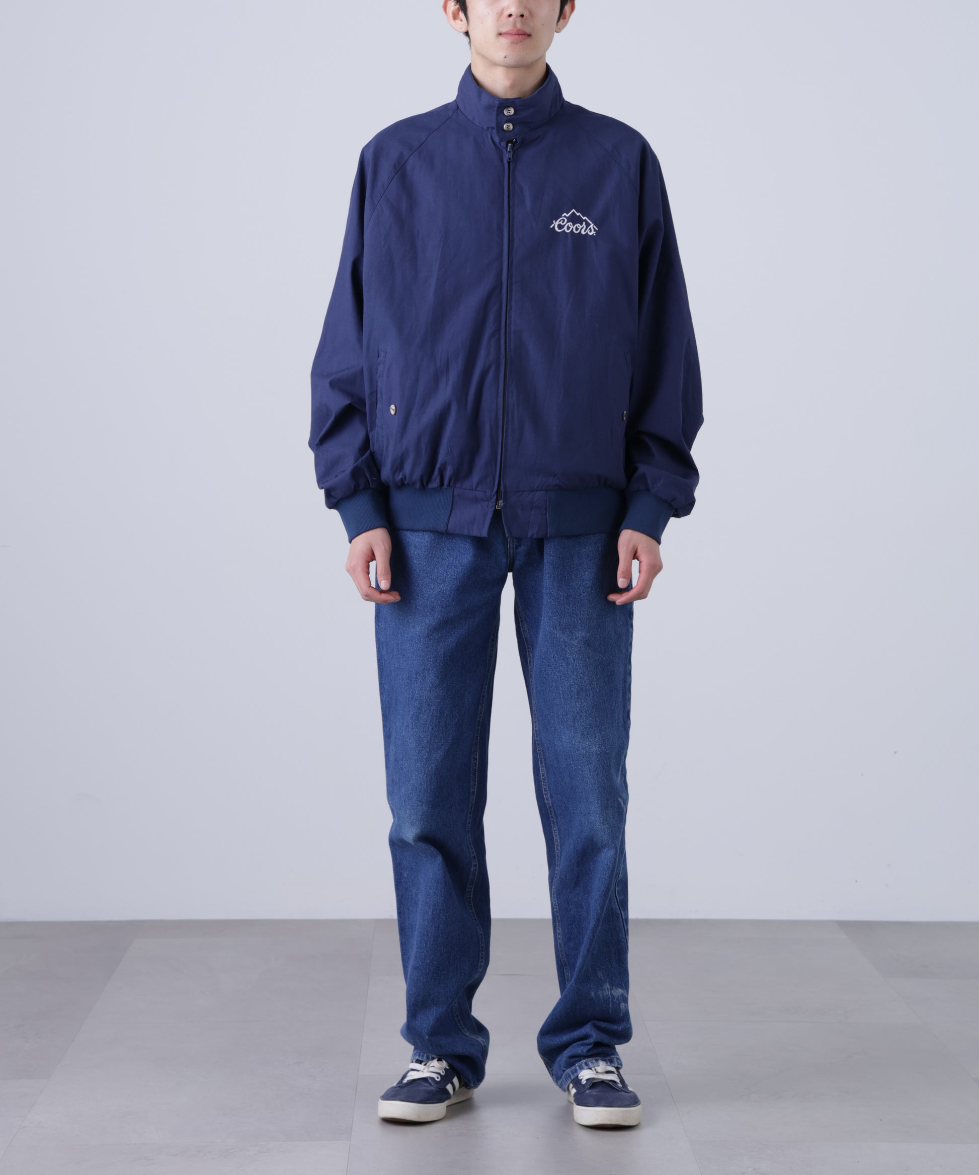 アメリカボーリングシャツメーカーKing Louieの「POR FIT」ラインをベースにフロントにビールブランドCOORSの刺繍ロゴをあしらったネイビーブルゾン。