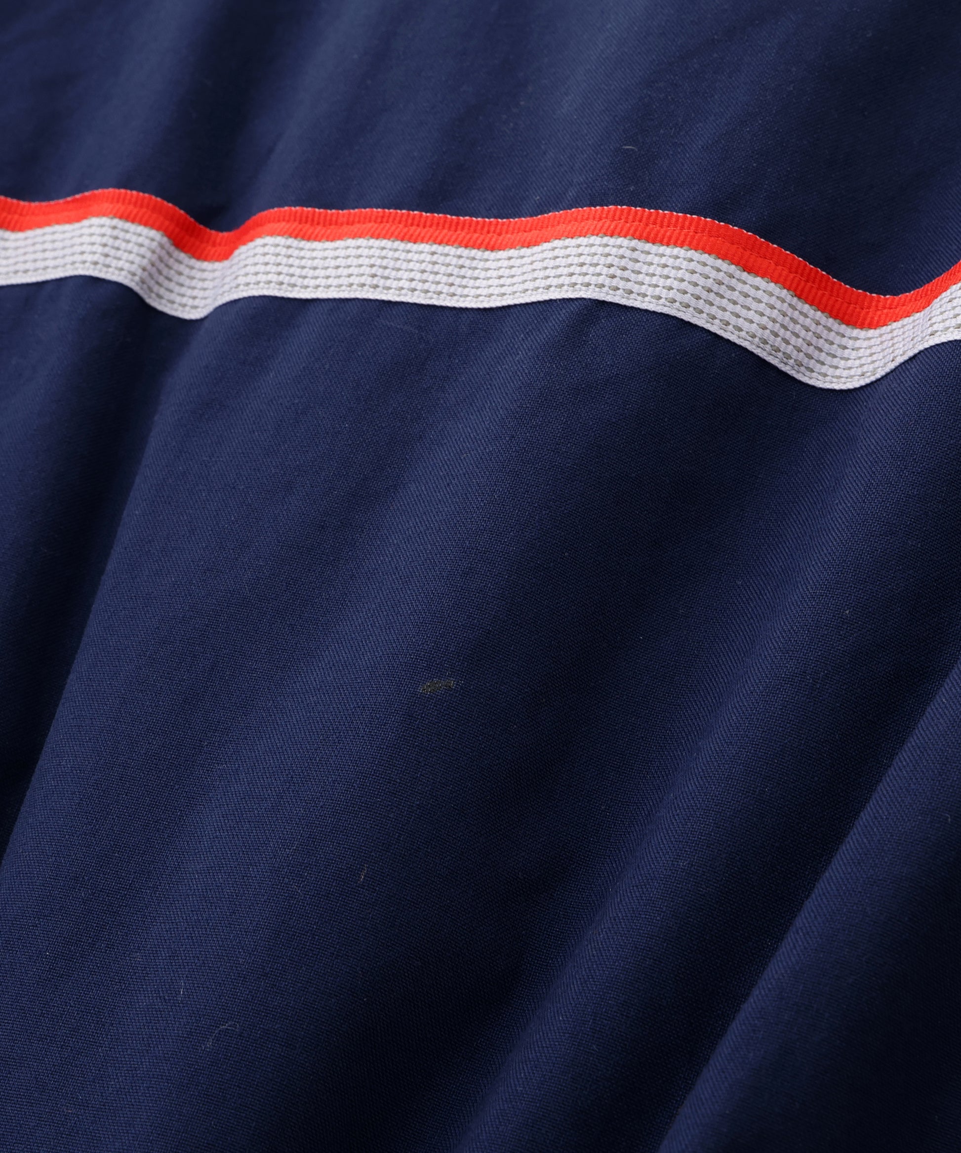 ネイビーボディに、ポケット部分のレッド×ホワイトのラインテープがアクセントになった、ワーク感のある一着。